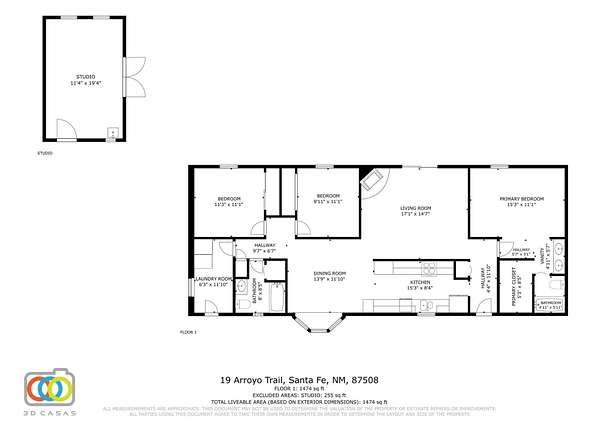 From Santa Fe take Highway 14 South. Turn left on Turquoise Trail (across from San Marcos Feed and Cafe and just after the fire station). Take a right on Dawn Trail. Bear right at fork to Arroyo Trail. Driveway for #19 is on the left.