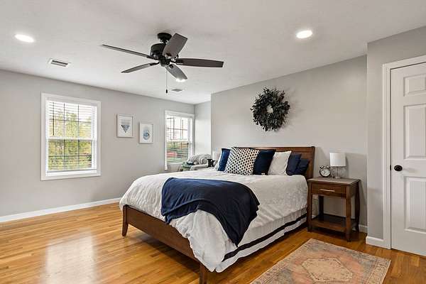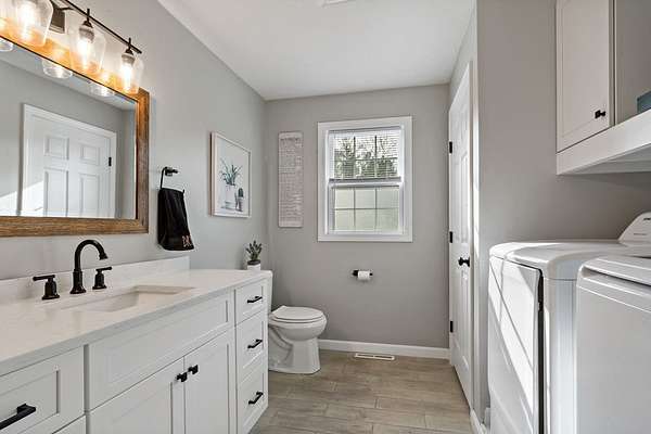 Step into timeless charm with this beautifully crafted Colonial offering over 2,400 sq. ft. of character and comfort. The open-concept first floor features hardwoods throughout, a warm family room with fireplace, formal dining, updated kitchen with center island, cozy den, and a half bath with laundry hookups. Upstairs you'll find 3-4 spacious bedrooms with oversized closets, including a primary suite with gleaming hardwoods, walk-in closet, and stunning en-suite bath with custom tile shower. One additional room offers flexibility as an office or guest space. Detailed woodwork and thoughtful carpentry create a custom feel. The walk-out basement adds potential living space, plus an outside shed for storage. Enjoy a newly paved driveway, well-kept yard, and solar panels for year-round energy savings. 100% move-in ready and recently renovated-schedule your showing today!