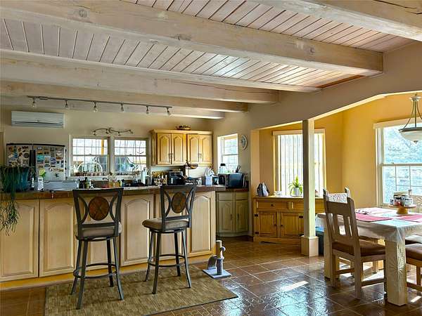 Welcome to a serene retreat nestled in the heart of the enchanting American Southwest. This custom-built, three-level home at 19 County Road 60A in Velarde, New Mexico, offers a harmonious blend of elegance and privacy. As you step into the majestic foyer, you're greeted by the warmth of beams with tongue and groove ceilings, complemented by tile floors that flow throughout the expansive 2,898 square feet of living space. There is a wood burning fireplace and natural gas is connected and in use. No propane tanks needed here. With four spacious bedrooms and 2.5 bathrooms, this single-family home is designed for comfort and style. The metal propanel pitched roof adds a touch of modernity, while the luxury terrace invites you to unwind and soak in the breathtaking views. Situated on nearly 8 acres of private land, this property boasts two private wells, ensuring a plentiful water supply. Its prime location offers a peaceful escape, yet it's conveniently positioned between the cultural hubs of Taos and Santa Fe, and just a stone's throw from the Rio Grande. Whether you're seeking solitude or adventure, this home offers the perfect balance. Embrace the opportunity to own a piece of the great American Southwest. Schedule a showing to experience it in person.
