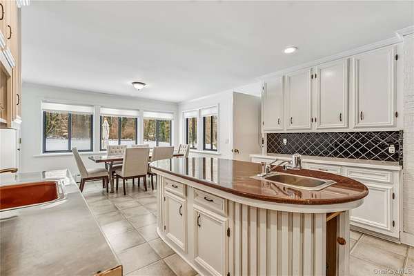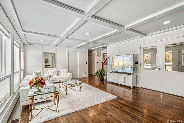 Lattingtown Harbor-Private Beach Community! Tucked away in a wooded North Shore wonderland of magnificent estates on scenic wooded roads, ending at beaches along the shore of Long Island Sound, is an exceptional opportunity to create the home of your dreams. A large farm ranch that has been lovingly cared for and renovated most recently with new windows, updated baths, and refinished hardwood floors, it offers a lovely 2.25-acre property with emerald lawns, pristine wooded areas, an expansive patio, room for a future pool if wanted, plus a delightful home with 7 bedrooms, four-and-a-half baths, sundrenched, spacious rooms, and a detached four-car garage with workshop area and stairs up to a huge second floor with sliding doors that open to a wraparound deck overlooking the property, ideal for a recreation room, office, studio, or anything you would like. Approached by a long, horseshoe drive and a large parking area between the house and garage, the home welcomes guests into a spacious foyer with coat closet, updated powder room, and stairs to the lower level. The adjoining living room offers ample sunlit space for welcoming guests and includes a charming woodburning fireplace, gleaming hardwood floors, and large windows overlooking the front property. An archway leads into the banquet-sized dining room, three walls of windows flooding the room with sunny vistas, and a door to the rear patio. A unique butler's pantry with an amazing amount of storage connects the room with the kitchen that offers ample cabinetry, stainless steel appliances, a unique center island with one of two sinks, and ceramic tile floors that flow into the spacious breakfast area overlooking the patio. Just off the kitchen, a service area with an attached full bath could serve as a mudroom or additional bedroom with outside door to the driveway. On the other side of the kitchen, a very spacious den with wood-burning fireplace is the hub of the house, with doors to the patio and to the foyer, stairs to the second floor, many windows overlooking the rear property, and hardwood floors flowing into the bedroom wing hallway. This accesses a spacious primary suite with ample closets and windows and a newly renovated primary bath offering a free-standing soaking tub, a shower with state-of-the-art glass doors, and a large floating vanity. Three additional bedrooms share another updated bath with tub/shower and floating twin vanity. The second floor offers additional bedrooms, a bath, two sitting rooms, and many windows and dormers. A full basement can be finished with unlimited potential and a brick fireplace, sliding glass doors with steps and access to the rear patio, and over 3,000 new square feet to add to the home's present 4,154-square-foot interior. Additional features include generator, hot-water baseboard heat, central air-conditioning, inground sprinklers (5 zones), serene privacy, and only a third-mile drive to the beach. Located in Lattingtown Harbor, this special home is in the heart of Locust Valley. About thirty-one miles from Manhattan, it is rapidly replacing the Hamptons as THE place to live. So much closer to the city, it offers delightful villages with quaint shops and restaurants, miles of shoreline and beaches, mansion museums, waterfront restaurants, golf courses (one just a five-iron shot away), night life, train station, hospital, and so much more. The beachfront clubhouse is a perfect place to get to know and enjoy your neighbors; it offers two stories of porches overlooking the Sound and Frost Creek, cabanas, kitchen, lounge, recreation room, bathrooms, a floating dock, storage area for kayaks, grills, mooring, swimming, fishing, and a perfect spot to sit on the beach and enjoy spectacular sunsets. View 3D tour and floor plans.