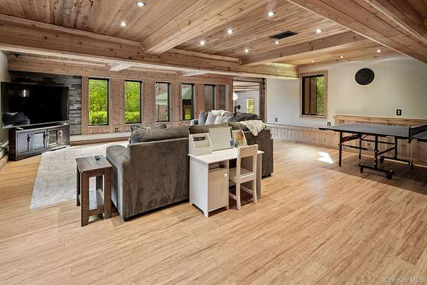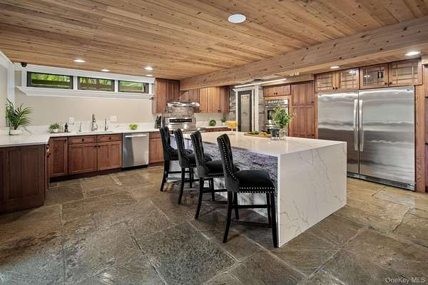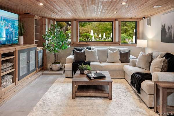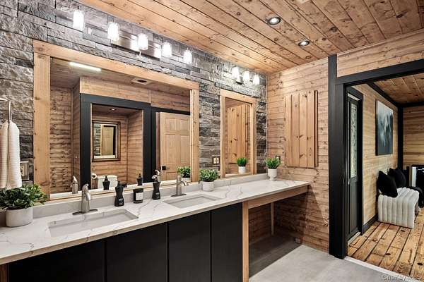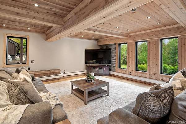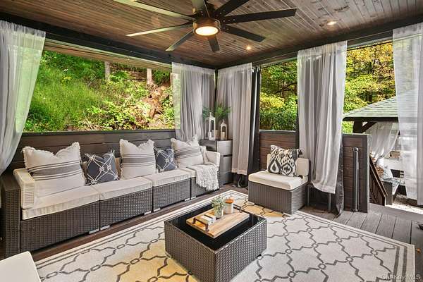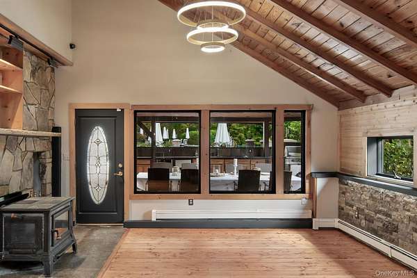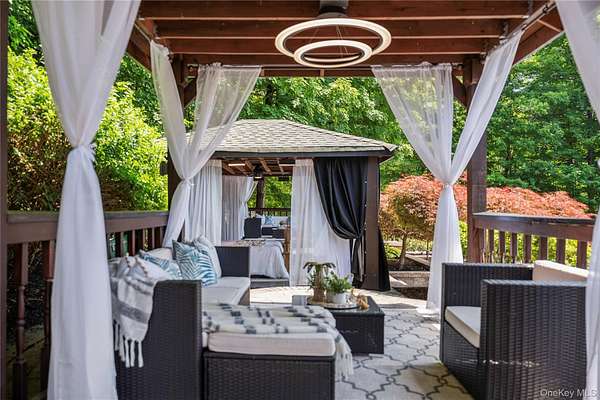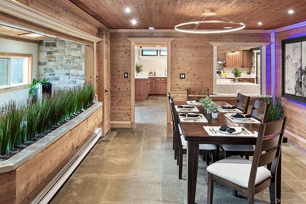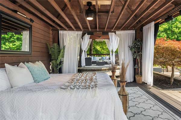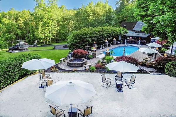 Set behind a gated entrance with a private guard house and unfolding across 8.4 private acres, The Retreat at Greentree is a true estate in every sense, engineered for privacy, designed for lifestyle, and positioned as one of the most unique offerings in the Hudson Valley. A cascading waterfall greets you on arrival, establishing a sense of calm and separation from the outside world. From that moment forward, every detail reinforces the same idea. This property was built intentionally, without compromise. Originally designed by renowned architect Paul Rudolph, the residence carries a level of architectural pedigree rarely available. Spanning over 7,750 square feet, the home blends that design legacy with modern performance, including radiant heated floors, geothermal systems, and thoughtfully curated living spaces that feel both refined and highly functional. What truly sets this property apart is the lifestyle it delivers. A private helipad offers direct access to Manhattan in approximately 14 minutes, redefining convenience at the highest level. The grounds unfold as a resort-caliber setting, anchored by a heated saltwater pool, three private cabanas, and a fully equipped outdoor kitchen with a dedicated dining space designed for effortless indoor outdoor living. A rare white sand beach introduces an unexpected element, creating a setting that feels more like a destination resort than a private residence. Inside, the home takes on a spa-like atmosphere, with wellness-driven features including a private sauna and spaces designed to restore and recharge. The primary suite is its own retreat, complete with a three-season room that extends the experience outdoors while maintaining complete privacy. A fully built-out home theater adds another layer to the lifestyle, bringing a true cinematic environment into the comfort of your own home. Beyond the property itself, the location adds another dimension. This is the perfect getaway for winter weekends, fall retreats, or summer escapes, surrounded by some of the Hudson Valley's most sought-after destinations. Just minutes from LEGOLAND New York Resort, Woodbury Common Premium Outlets, Warwick Valley Winery & Distillery, local apple orchards throughout Warwick, Bear Mountain State Park for skiing and outdoor recreation, and the five-star Glenmere Mansion, the area offers a rare blend of recreation, luxury, and accessibility. Hiking, camping, fishing, skiing, biking, horseback riding, fine dining, and shopping are all within reach, creating a year-round lifestyle that is both active and refined. This is more than a residence. It is a fully realized compound, private, efficient, and architecturally significant, built for someone who values time, discretion, and a level of living that cannot be replicated.