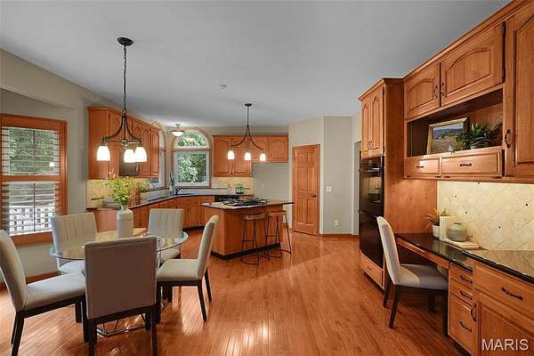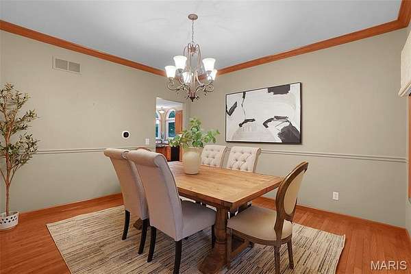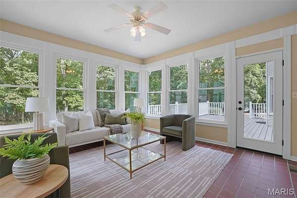 Meticulously maintained 2-story traditional home with over 3,300 sf of finished living space and impressive landscape. Boasting 4 beds, 3.5 baths plus an office or nursery, sunroom and breakfast room. Entertain in style with a formal dining room. The chef's kitchen is a standout: plantation shutters, custom hickory cabinets, granite counters, center island, planning desk, and a double oven perfect for culinary enthusiasts. Gleaming wood floors grace most of the main level, and a newly updated brick wood-burning fireplace anchors the living room. A rare opportunity for car enthusiasts-this one-of-a-kind property has a highlight feature that sets it apart: garages for up to 7 vehicles. Parking and storage are abundant. A 3-car insulated 24x35 garage off the kitchen and a second oversized heated and cooled 1 car garage 24'x35'-accessible through the basement or exterior of the home. A detached oversized 3 car shed with loft adds even more storage, plus a 6 ft vinyl-fenced area for outdoor equipment. Surrounding landscaping is lush and well-manicured, creating curb appeal and a welcoming entrance. The backyard retreat includes a goldfish pond with waterfall-a serene oasis for relaxation or entertaining. Driveway parking easily accommodates many guests. Other noteworthy items include-central vacuum, epoxy garage floor, double door walk out LL, composite deck off sunroom. Francis Howell schools, close to Defiance wineries and Lake St. Louis shopping.