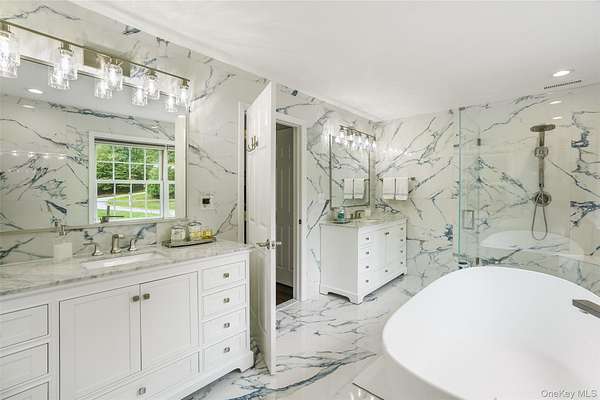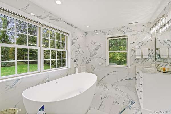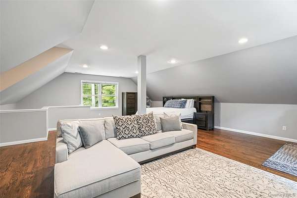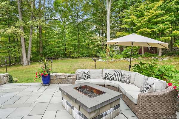 The Perfect Country Colonial. Peaceful setting at the end of a desirable cul-de-sac. Nearly three serene acres with level lawns, flowering plantings, stone walls and towering trees. Fabulous rear terrace with firepit, built-in barbecue and fridge for fun outdoor entertaining. Absolutely turn-key Colonial with light and airy rooms. Stunning interior with great circular flow, high ceilings and beautiful hardwood floors in a dark stain. Dramatic Two-Story Entrance Hall. Formal Living and Dining Rooms. Private Office ideal for working remotely. Chef's Kitchen open to Family Room with soaring ceiling and gas fireplace. Four Bedrooms including private Primary Suite. Luxurious new Baths. Second Floor Bonus Room with infinite possibilities. Walkout Lower Level. Great Storage. John Jay Schools. An incredible offering!