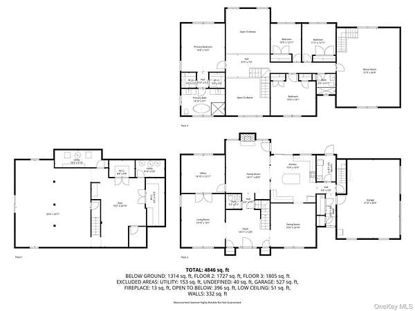 - Basement, Bathroom x 3, Bedroom x 4, Bonus Room, Dining Room, Kitchen, Living Room