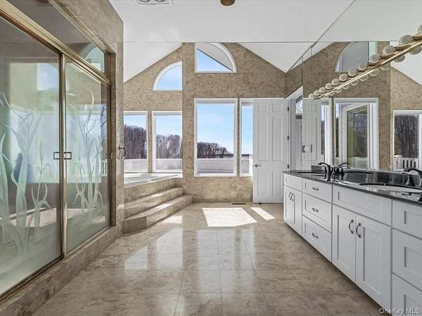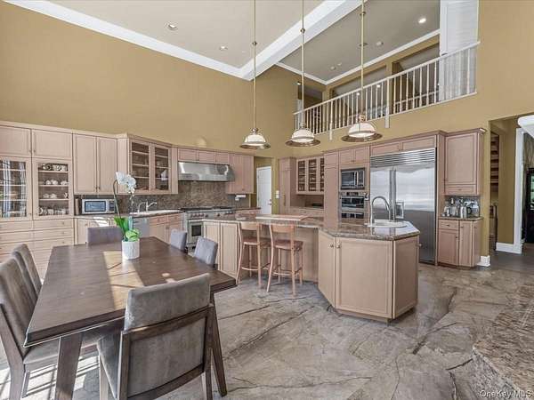 - Beamed Ceilings, Built-In Features, Cathedral Ceiling(s), Chefs Kitchen, Elevator, Entrance Foyer, First Floor Bedroom, First Floor Full Bath, Formal Dining, High Ceilings, Kitchen Island, Master Downstairs, Pantry, Primary Bathroom, Recessed Lighting