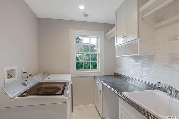 - Chefs Kitchen, Crown Molding, Eat-In Kitchen, Entrance Foyer, First Floor Bedroom, First Floor Full Bath, Formal Dining, High Ceilings, His and Hers Closets, In-Law Floorplan, Kitchen Island, Marble Counters, Natural Woodwork, Open Kitchen, Primary Bathroom, Recessed Lighting, Soaking Tub, Storage, Walk-In Closet(s), Washer/Dryer Hookup