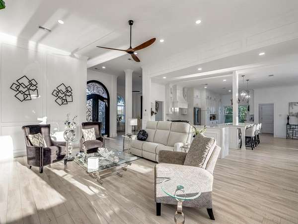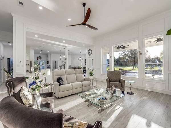 ?Beautifully maintained completely renovated one story, 4 bed, 3 bath on hard to find 1.67 acres in highly sought after, gated community of Country Ridge Estates. Enter through the elegant custom double wrought iron door to the front living room that boasts high ceilings and large windows. Extra living room. Formal dining and large custom kitchen creates the perfect place for entertainment. Custom wine cabinet with cooler. 5 stage reverse osmosis system. Solid interior doors. Laminate floors throughout the entire home. Master bathroom has large shower with Infrared sauna. Custom walk in closet. Master suite has private door that accesses covered back patio. Huge fenced in nicely landscaped backyard with boulders and trees for privacy. Cool off in your custom pool with large concrete area with cool decking. Have a friendly game of Pickelball on your own private Pickelball court. Brand new 900 sq ft insulated shop with its own 200 amp meter for those that need a big workshop or just extra storage.