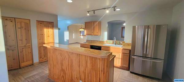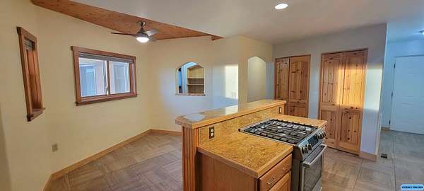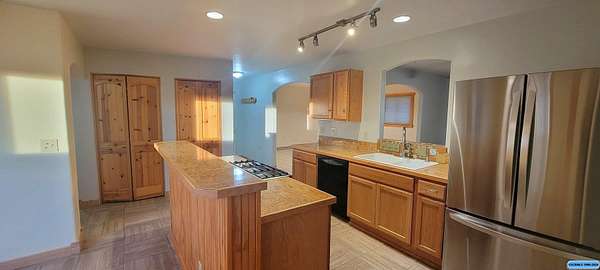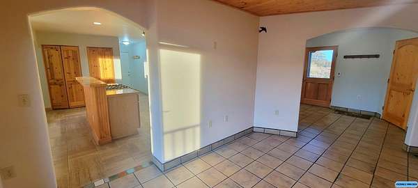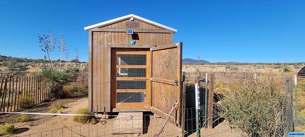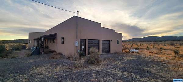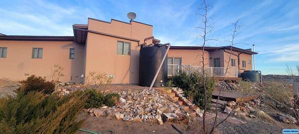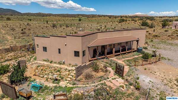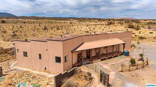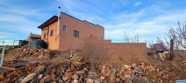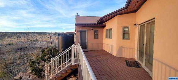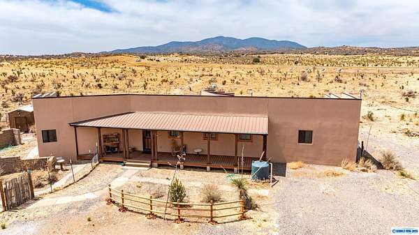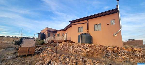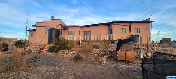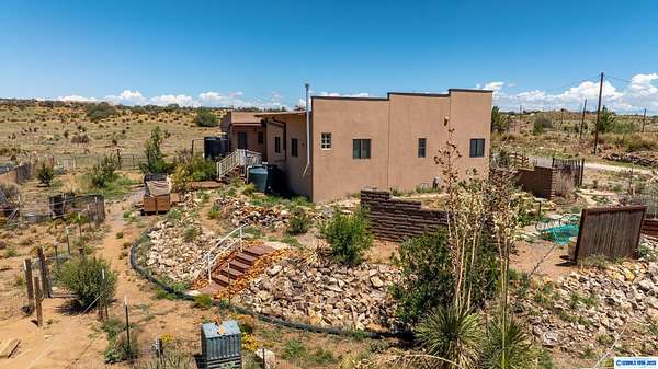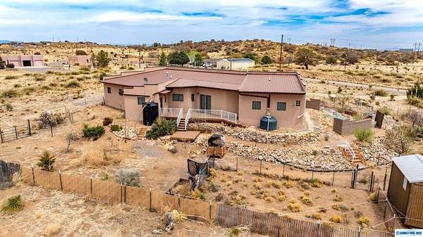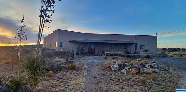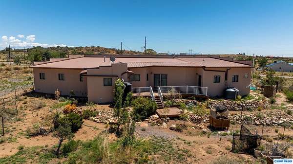 This charming 3 BD, 2 BA Southwest-style home blends rural charm with modern amenities. Filled with natural light and plenty of room to relax or entertain. Enjoy stunning views from the den and two bedrooms opening directly to the back porch. Recent upgrades include re-stuccoed exterior, Marvin windows and doors with energy-efficient honeycomb blinds, new floor tile in kitchen and halls, hardwood in 2 bedrooms. The bright kitchen includes a dining nook, Bosch 5-burner stove, stainless steel French door refrigerator, large pantry, and closet utility sink. Laundry room is separate. Gas furnace for heat, plus pellet stove in main bedroom and whole house water filtration. A crawl space beneath the entire house provides utility access. Attached garage has RV hook-up. Large, fenced backyard offers raised garden beds, hen area, fruit trees, and 1900 gallons of roof water collection in 3 tanks. Includes the adjacent lot (11.24 acres, 2 Lots!) Ask for a list of all features!