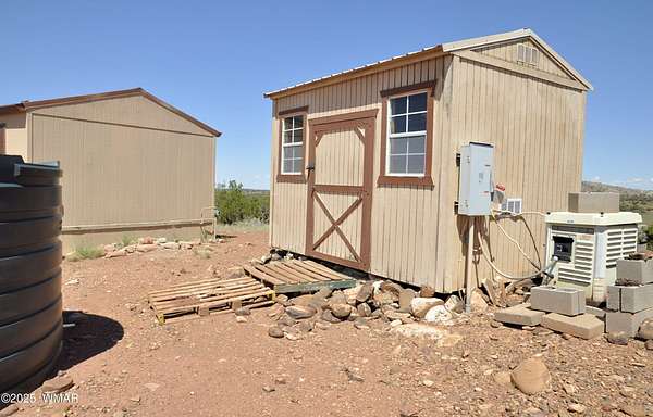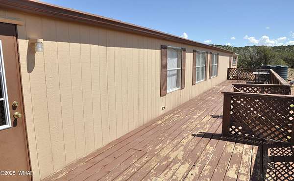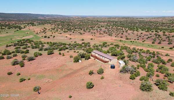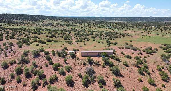 3BD/2BA, 1280 sq ft home on 38 ac, bordering a section (640 ac) of state land. Live sustainably on this off grid property, & feel the freedom self sufficient living provides. Private well into the Coconino Aquifer (which provides good, abundant, water), just needs a pump installed. Well reg 55-530901 (see documents for info). 2 water holding tanks (2825 gal, 1320 gal) for water delivery or haul until well pump installed. 1500 gal propane tank, buried/owned. Large deck to enjoy the great views from this elevated property. Home comes furnished if buyer desires. Road in is non maintained and rough...SUV or truck recommended. Property private & secluded. Aprox 27 mi to Show Low. Perk test and septic info also located under documents. Property currently powered via propane generator. New.... and unused solar equipment is stored and conveys with the property. Water line from well to holding tank is in place.