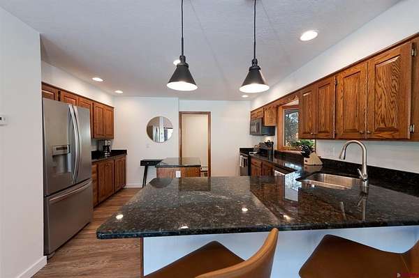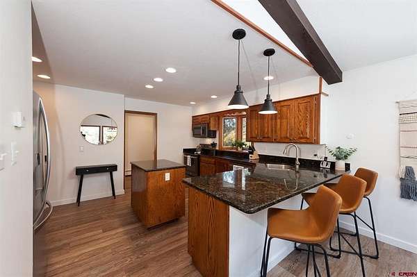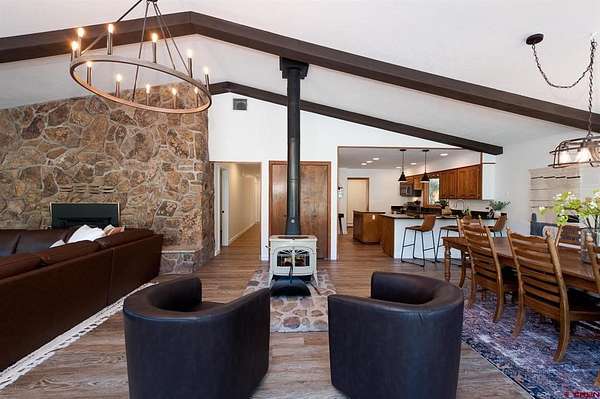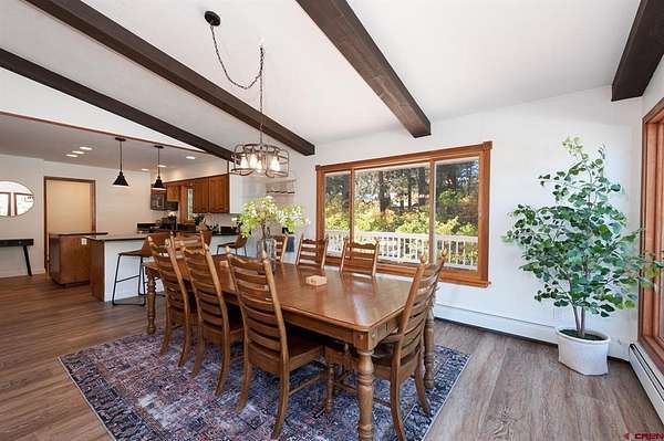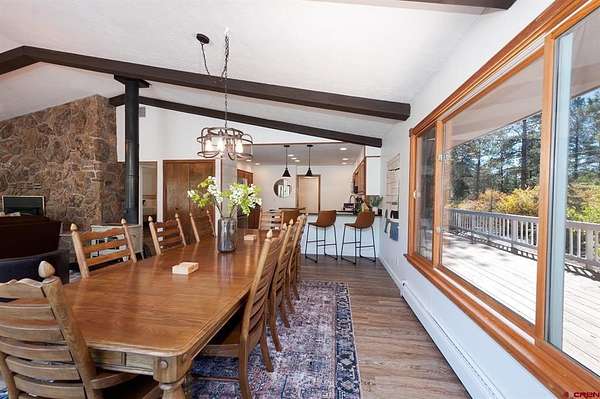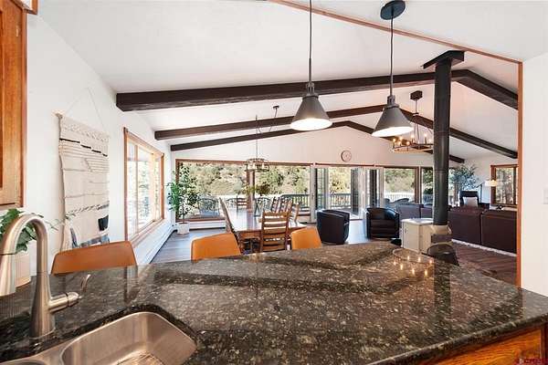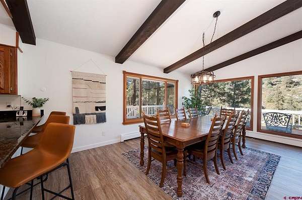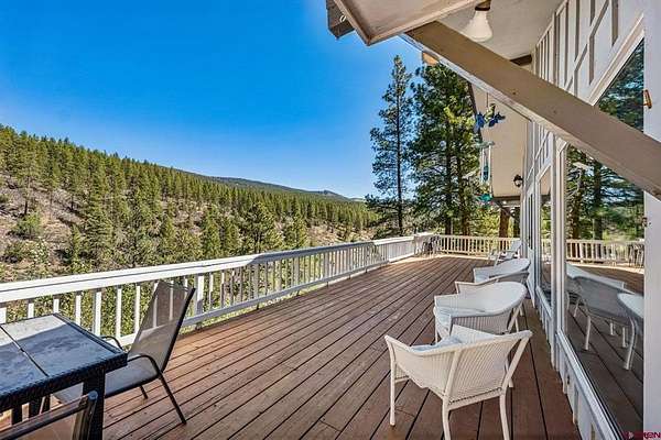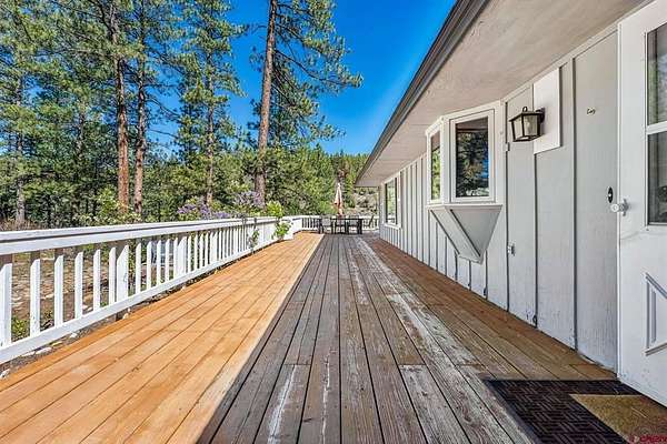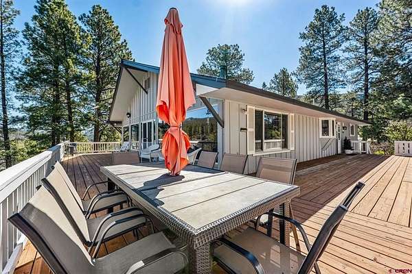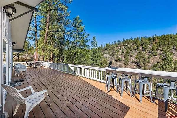 Christina M Rinderle, Durango Land and Homes, C: 970-946-2279, christina@dgohome.com, www.durangolandandhomes.com: Nestled among tall pines in the desirable Florida River Estates, this 3-bedroom, 3-bathroom home with a lower level bonus room offers privacy, space, convenience, AND vacation rental income potential, all on just under 2 acres—only 15 minutes from Downtown Durango and 40 minutes from Purgatory Resort.A circular paved driveway welcomes you with ample parking and easy access, setting the tone for this peaceful mountain retreat. Inside, the main level is thoughtfully designed with all primary living spaces and bedrooms, creating a highly functional and livable layout. Vaulted ceilings with exposed beams, a cozy wood-burning stove, and floor-to-ceiling windows fill the open-concept living, dining, and kitchen areas with natural light while showcasing the surrounding forest and mountain views. Hydronic baseboard heating adds warmth and comfort in the colder months. The kitchen features granite countertops, a breakfast bar, and a full suite of newer appliances—including an electric range, microwave, dishwasher, and refrigerator—flowing seamlessly into the dining and living spaces for easy entertaining. The primary suite includes a double vanity and a spa-like wet room bathroom with a soaking tub and sliding glass door. Two additional bedrooms frame the hallway bathroom. The stairs lead down to a lower level, adding flexibility with a bonus room featuring a private exterior entrance, and connectivity to the laundry area and a newly renovated ¾ bath—ideal for guests, a home office, or home gym. Outdoor living is a standout feature, highlighted by an expansive wraparound deck spanning two sides of the home. This deck offers multiple vantage points to enjoy the serene setting, towering pines, and mountain views, and it backs to a 10-acre conservation easement for added privacy. Outdoor amenities also include a storage shed, natural landscaping, a barbecue area, and a horseshoe pit. The lot offers ample space for RV parking, and Florida River Estates residents enjoy access to community ponds and the option for horses. Recent upgrades, completed in April 2026, include a new roof and fascia, providing peace of mind for years to come. Other recent upgrades in the last year include: new water softener plumbed, new Navien firetube hot water boiler, and a water booster pump to increase the flow rate. The sewer line for the septic system was also replaced in early 2026. The property is also supported by a central water system and strong internet service. This is Colorado living at its best—private, scenic, and conveniently close to town.