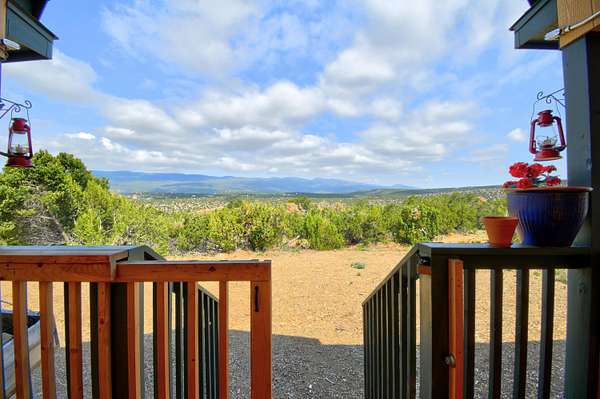 Head west on I-40. Use the 2nd from the right lane to take exit 175 toward NM-14/Cedar Crest. Merge onto NM-333 E/U.S. Rte 66. Turn right to stay on NM-333 E/U.S. Rte 66. Left onto N Zamora Rd. Left onto Gutierrez Canyon Rd. Right onto El Refugio Rd. Right onto Rick Rock Ln. Turn left and drive up hill to reach 19 Rick Rock.