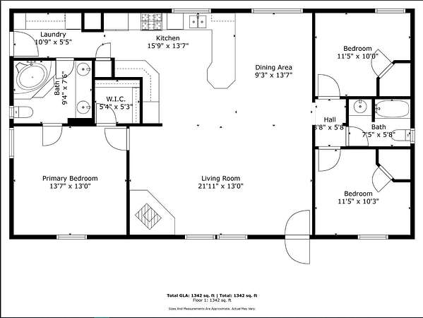 - Bathroom x 2, Bedroom x 3, Kitchen, Living Room