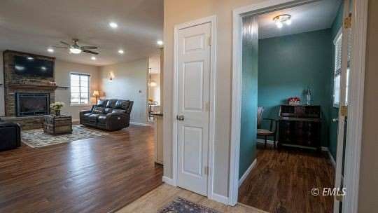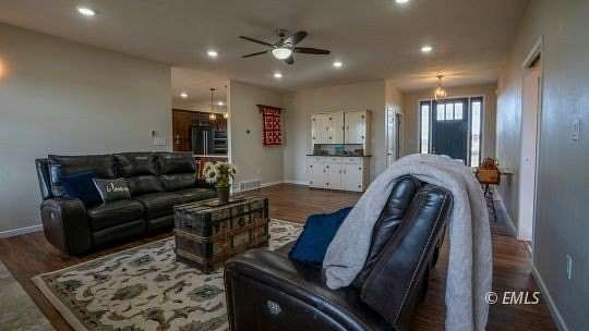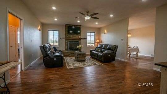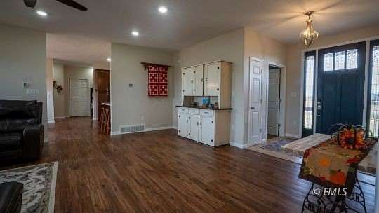On just over 5 acres, in a beautiful country setting, just minutes from town sits a spacious ranch style home. With 5 bedrooms and room for a 6th if desired. Laminate hardwood floors, large bedrooms, a gas fireplace, a generous dining area with walk-out to the spacious backyard. The kitchen features dark cabinetry, with pull out shelving, a gas stove with hood, stainless appliances, stainless farmhouse sink, bar seating, and quartz counters. In addition, there is a private master with walk-in closet, and full bathroom w/ separate shower and champagne tub. The basement features 2 fully-egress bedrooms, a bathroom with walk-in shower, an oversized family room (plumbed for wet bar), and a large additional room for a playroom, rec space, or workout room. The basement is fully spray foam insulated with blue pine ceilings. Besides the two-car attached garage with storage room and dog door, there is also a 30x25 quonset, with 10ft overhead door. UGSP and fenced yard for kids or pets, and a large firepit. Enjoy the sunrise from your front covered porch, and the sunset from your back porch. You have a river view without the danger of riverfront. A rare find! Acreage only minutes from town!