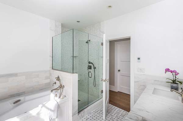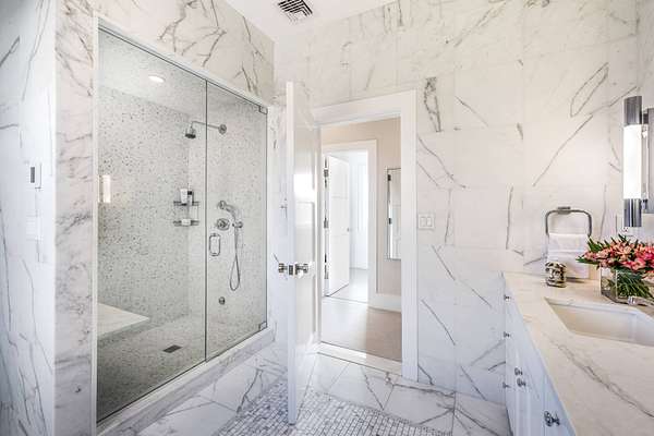 Your Quintessential Hamptons retreat awaits at "The Fields," on 1.95 acres of lush grounds complete with a spectacular heated gunite pool, outdoor shower, fabulous patios for entertaining, and the option for a pool house. Enjoy the perfect hideaway that abuts a large town reserve for added seclusion, and a supreme location near it all, less than a mile from East Hampton Village, fine shops and restaurants, the train, Jitney, and pristine ocean beaches! This gracious gated, shingled classic estate home accessed by a long private arborvitae-lined drive offers 7 bedrooms, 7+ bathrooms, and 3 generous stories of beautifully-designed space to suit your every need. A large parking court leading to an attached 2-car garage provides plenty of room for vehicles. Luxurious, impeccably renovated interiors boast a large light-filled sunken living room with a fireplace and vaulted ceilings, dining room and family room - all opening to an expansive mahogany deck with retractable awning for shade. Host seamless indoor-outdoor gatherings, sip coffee and cocktails overlooking scenic long views, and lounge by the secluded pool for the ultimate summer experience. A stunning marble and stainless steel kitchen with top-of-the-line appointments and appliances will inspire your inner chef. Both the first and second levels feature radiant heat flooring and convenient laundry rooms. Three of the bedroom suites with elegant baths open to a tranquil terrace or balcony deck. A separate staircase rises to an additional 2-bedroom guest wing for optimal privacy. Extending comfort and recreation is a finished lower level with a workout room, media or playroom, additional room and a full bath. This home offers the perfect balance of seclusion and convenience, making it an ideal sanctuary for those seeking the ultimate Hamptons lifestyle.