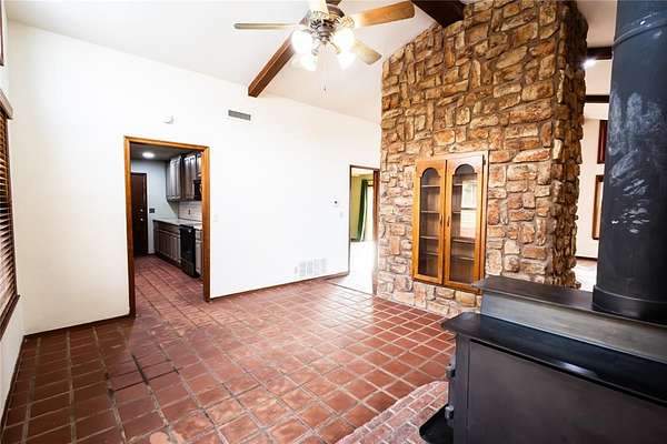 Tucked into a mostly wooded 3.01-acre setting in Dale School District, this privacy-minded property offers peaceful country living with convenient highway access for an easy commute. Built in 1980, this home blends rustic charm with thoughtful updates. The living room welcomes you with tall ceilings and large west-facing windows that flood the space with natural light and frame beautiful Oklahoma sunsets. A striking stone mantle anchors the wood-burning fireplace, while an additional wood stove adds warmth, efficiency, and character during cooler months. The home features three bedrooms and a spacious bathroom with tile tub and shower surrounds. The interior feels fresh and move-in ready. Newer appliances add value in the kitchen, and a dedicated laundry closet provides convenient functionality. A single-car garage completes the layout. Step outside and experience the lifestyle this property offers. Wooden front and back decks create ideal spaces for relaxing or entertaining. The maintained above-ground pool is ready for summer gatherings. The generator port and in-ground storm shelter provides added peace of mind. The property is serviced by a private well and septic system, with the septic professionally maintained by Red Dirt Septic. Seller is willing to replace the roof with an acceptable offer providing added confidence and long-term value for the next owner. If you've been searching for acreage, privacy, and character all within Dale Schools, this one delivers.