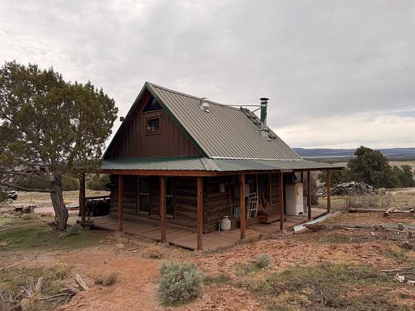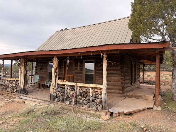 Off grid but easy to get on. 35 minutes from Central Grand Junction. This unique parcel with the original Ranch homestead has lots of history. A 1920s built log dry cabin has an insulated metal roof, wood stove, stairs to a loft area, kitchen area, dining table, comes partially furnished. Outside has plenty of room for RV or trailer, parking where the land has been mowed. Parcel has dramatic sandstone outcropping, mature cedar and juniper trees. Lots of wildlife and room to explore. Enjoy the dark skies of Glade Park from the original 1920s one room log cabin, featuring an added-on wrap around covered deck, overlooking expansive views of Glade Park. Easy access from community-maintained road accessible by car year-round. An HOA exists only to maintain the primary access road at a shared cost of $300 a year. Power is along the East property line and could be run to cabin. Established fire pit area for safe campfires. Clean usable outhouse, and several original corrals and dug in cellars.