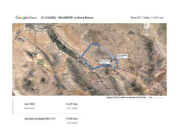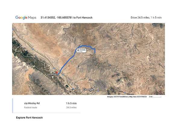 Offering a stunning mountain view and rich in wildlife, this property is conveniently close to Fort Hancock and Sierra Blanca, providing ample amenities. (Owner has a total of 220 acres for sale). The land is ideal for recreational activities such as hiking, camping, and horse riding. Owner financing options include 40% down, 9% interest, over 24 months. Note: No mineral rights convey. Currently, the land is unimproved with no designated zoning for construction, and utilities are not present. However, future development has the potential to significantly enhance the property's value. The property is conveniently located approximately an hour's drive from El Paso. All images represent the surrounding area of the property. The pin location provided is an approximate indicator of the actual site. For more information call Hudspeth County.