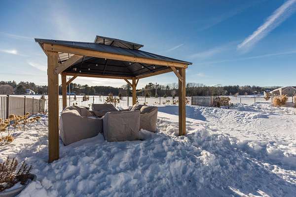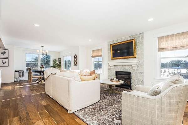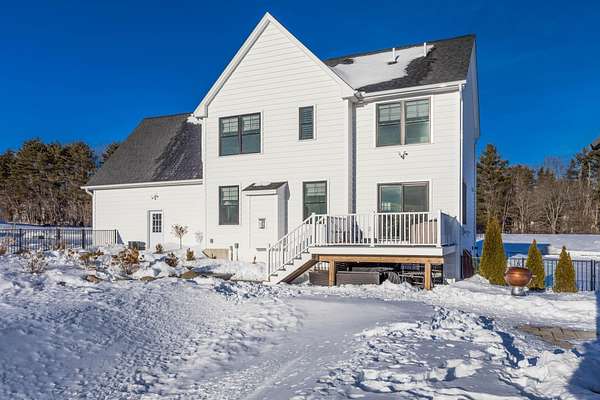 Welcome to Seward Farm, a sought-after community of luxury custom homes ideally located just minutes from I-95, offering easy access while remaining tucked away from the hustle of Route 1 in Kittery, Maine. Built in 2022 by award-winning Copley Properties, this thoughtfully designed home is filled with upgrades and high-end finishes rarely found in typical new construction. Situated on a generous 2.11-acre corner lot, the home offers exceptional curb appeal with an inviting farmer's porch, professionally designed landscaping, paver walkways, and attractive shrubbery. A spacious two-car attached garage and 2,292 square feet of living space provide the perfect blend of comfort, function, and style. Inside, the open-concept layout is ideal for both everyday living and entertaining. The kitchen, dining, and living areas flow seamlessly and feel tailor-made for hosting, with direct access to a 12x12 maintenance-free deck off the dining area. The chef's kitchen features high-end stainless steel appliances, a large center island, granite countertops, tile backsplash, and easy-close Craftsman-style cabinetry. Wide-plank Hallmark engineered wood flooring and Paradigm windows enhance the bright, modern aesthetic throughout. A versatile bonus room on the main level offers flexibility for a home office, playroom, or additional living space, while a functional mudroom and convenient powder room complete the first floor. Upstairs, the primary suite is a true retreat, featuring a walk-in closet and a private bath with a tiled walk-in shower and tile flooring. Two additional bedrooms and a full guest bathaEUR"also finished with tile shower and flooringaEUR"complete the second level. The outdoor space is equally impressive, highlighted by a stunning in-ground pool with beautiful hardscaping, perfect for summer entertaining or relaxing poolside. A pergola provides shaded comfort, creating an ideal backyard oasis. This home offers easy, upscale living in a peaceful setting.