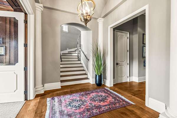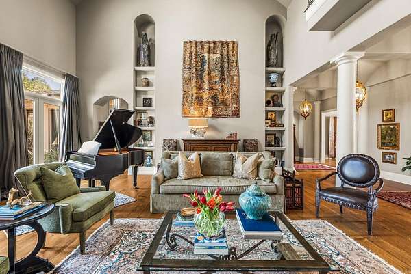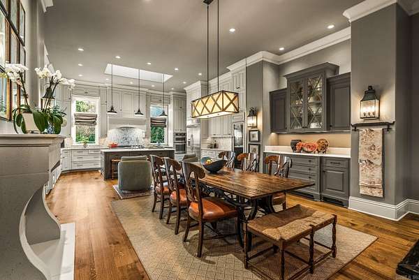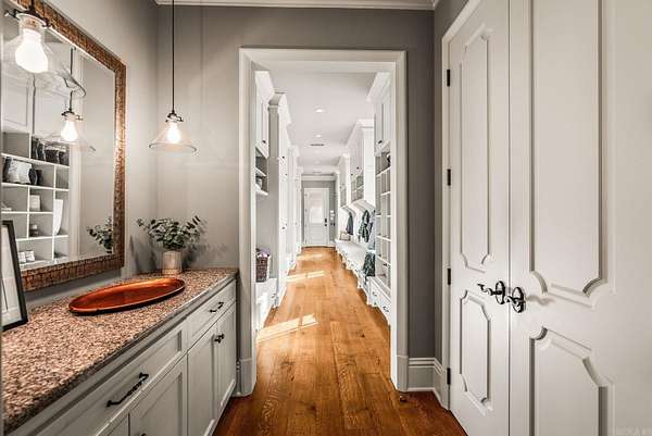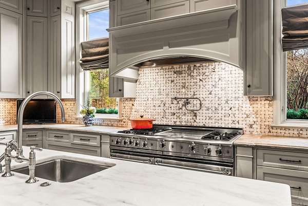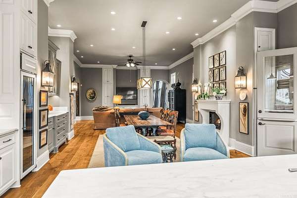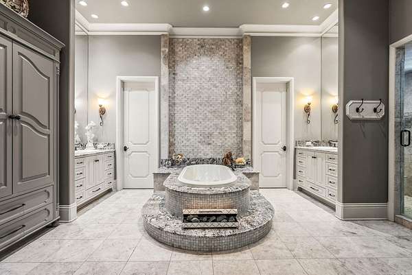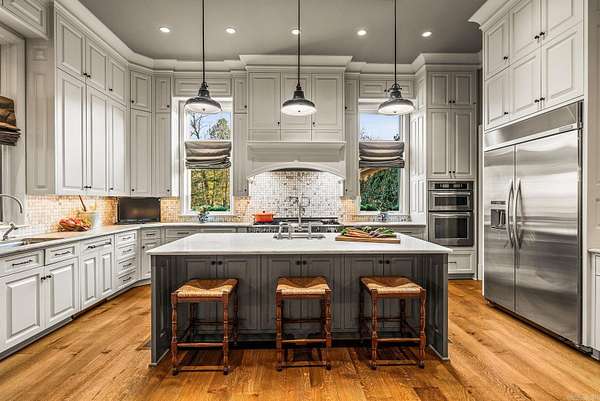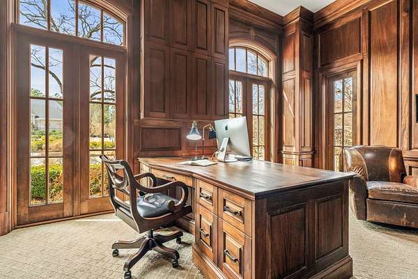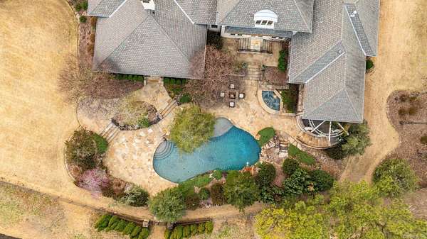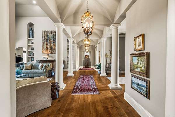 An exceptional European countryside-inspired estate set on a rare 1.78-acre double lot in Valley Falls Estates. A distinguished arrival begins with a motor court, porte cochère, and four-car garage. Timeless interiors showcase quartersawn oak hardwood floors and elegant marble, limestone, and granite finishes. A thoughtfully designed floor plan features five bedrooms, four full baths, two half baths, including two primary suites on the main level and one upstairs. The gourmet kitchen, centered around an oversized island and illuminated by a large skylight, flows seamlessly into the cozy hearth room with a gas fireplace and Dutch doors leading to a massive screened-in porch with a custom outdoor grill, creating effortless indoor-outdoor living. Additional spaces include a dramatic two-story living room, executive office with custom millwork & library ladder, game room, media room with storm-safe construction & expansive mudroom. Outdoors, a heated pool and spa, fire pit, & expansive covered patio with a gardener's prep area create a private retreat. This residence is an architectural statement designed for refined living.