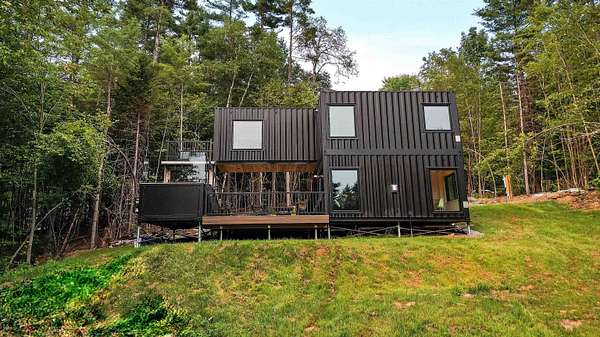 Wow! Been waiting for an eye-catcher with a mountain view? Presenting something unique, efficient, classy and sleek to check your boxes. Set out in the lakes region close to Summer fun and a quick drive to the Okemo is this new custom-built container home waiting for some lucky peeps to chill on the deck, glisten in the sauna, refresh in the pool, and sled down the hill. The main level space has large windows to bring in the outdoors and makes for the perfect gathering spot to cozy up to the fireplace, watch a movie, play some games, and whip up some tasty eats. The upper level offers more space for fun with the wet bar and another spot to watch tv. Choose a hot shower or a relaxing bath in the soaking tub after a day on the slopes. mountain biking, or just reading and decompressing from the busy world. Three private bedrooms allow for friends to join in on some Vermont time. The upper side deck is a favorite spot for morning coffee or an evening cocktail. If you are willing to share this special place, rentals would probably be off the charts! The owner has started the process with fire and safety. Updates will be available as the final items are finished and the management crew gets ready for Winter. Serious qualified buyers welcome. Pitched roof to be installed soon