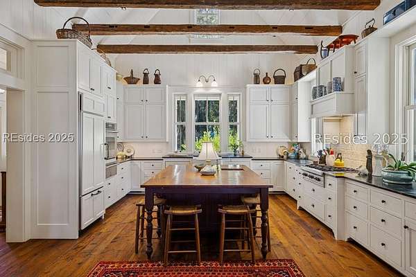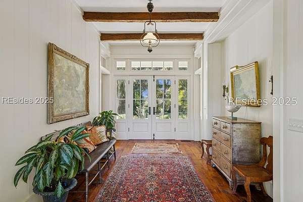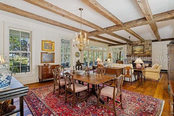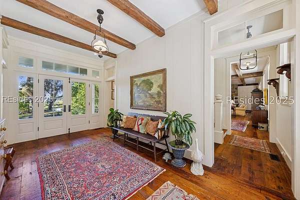 Designed by Historical Concepts and masterfully built in 2005, this custom 3-bedroom, 4-bath home offers 4,231 sq ft of timeless craftsmanship and understated Southern charm. Set at the end of a lane on 6.44 picturesque acres, the property welcomes you with a stunning drive framed by stately live oaks, leading to a retreat perfectly positioned along the marsh and a freshwater pond. Inside, hand selected 1770-1790's reclaimed antique wood graces the floors, walls, and beams, infusing the home with character and warmth. The thoughtfully designed floor plan offers inviting living spaces including, a large living room and dining room both overlooking the pond and marsh. A beautiful den ideal for quiet work or reading and a dream kitchen that accommodates more than one cook. The first floor primary bedroom and bath occupy one end of the home with private access to a screen porch with those same beautiful views of the pond and marsh. The second floor has two large bedrooms and baths and a perfect nook with bunkbeds for the little ones in your life. Each room showcases exceptional attention to detail, seamlessly blending classic Lowcountry style with modern comfort. Expansive porches wrap around the home, providing the perfect setting for outdoor living and entertaining, while a spacious screened porch invites you to relax and take in breathtaking views of the marsh and surrounding waterways. Large windows throughout capture the surrounding natural beauty, creating a seamless connection between indoors and out. This property is more than a home-it's a sanctuary where craftsmanship, nature, and Southern heritage come together in perfect harmony.