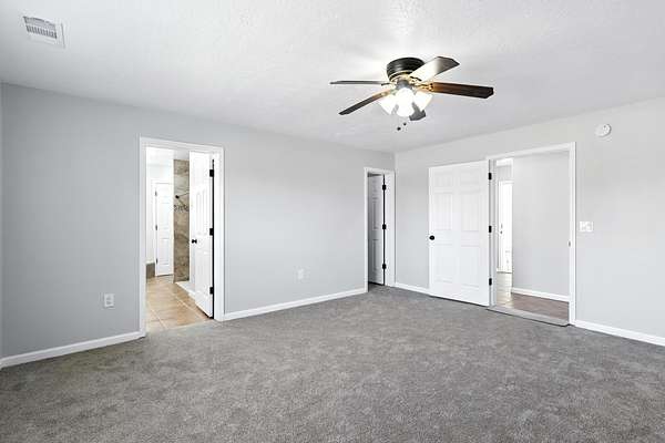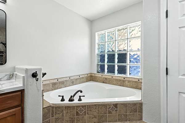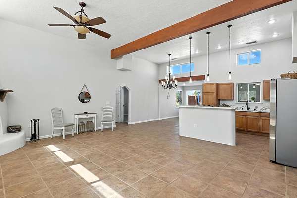 - Beamed Ceilings, Breakfast Bar, Ceiling Fans, Dual Sinks, Great Room, High Ceilings, High Speed Internet, Home Office, Jetted Tub, Main Level Primary, Separate Shower, Utility Room, Walk In Closets