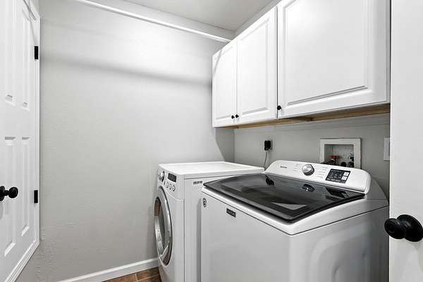 - Dishwasher, Disposal, Dryer, Free Standing Gas Range, Microwave, Self Cleaning Oven, Washer