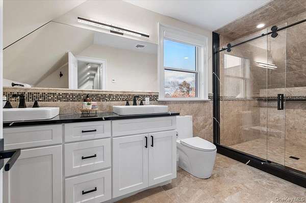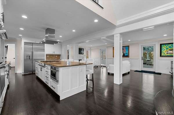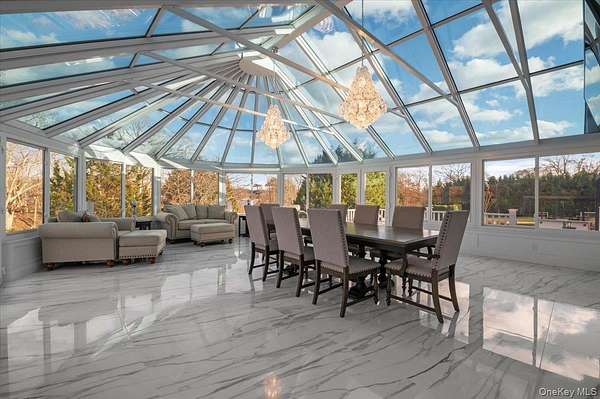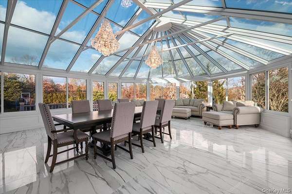 US Open Luxury Waterfront Rental Now Available. Set behind a gated driveway and surrounded by mature landscaping, this recently renovated waterfront residence offers living space across three levels; an exceptional scale rarely found in Hampton Bays. Designed for privacy and effortless entertaining, the home combines modern upgrades with direct water access and resort-style amenities. The main level features a glass conservatory, chef's kitchen with Thermador appliances, a first-floor primary suite with access to a three-season deck, an additional en-suite bedroom, a third bedroom, powder room, and laundry. The second floor includes five bedrooms, highlighted by a secondary suite with two walk-in closets, en-suite bath, and private balcony overlooking the water, plus two additional full bathrooms. The lower level offers an eight-seat movie theater, arcade room, and storage, ideal for extended stays. Outdoor amenities include a heated gunite pool, hot tub, outdoor kitchen, and multiple lounge and dining areas. Waterfront features include a boat lift, direct canal access, and open water views; ideal for boating enthusiasts. Additional features include a heated five-car garage with a Tesla backup battery and dual chargers. Memorial Day - Labor Day $185K | June US Open $100k | July $60k | July - Labor Day $120k | August $60k | August - Labor Day $70k | Yearly $360k | Off Season $35k/month.