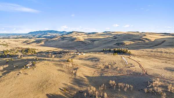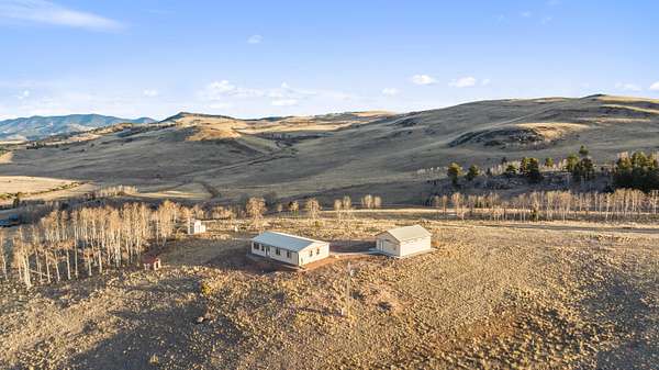 The acreage features a blend of aspens, pines, open grass areas, and unique rock formations that add character to the landscape. The mountaintop setting provides unobstructed views in all directions. Wildlife in the area includes antelope, elk, mule deer, bighorn sheep, and other native species commonly found in this region of Colorado.
