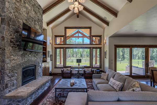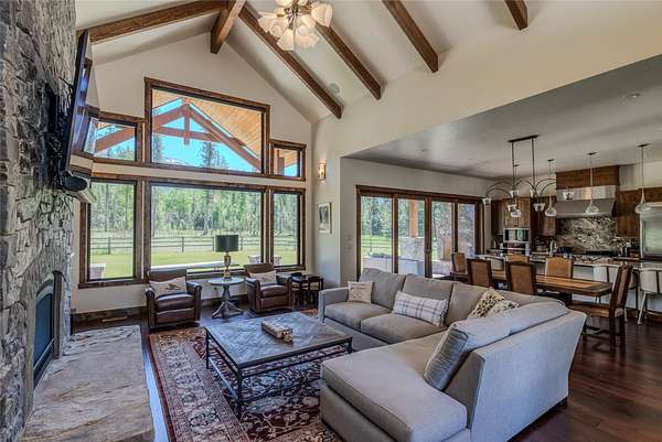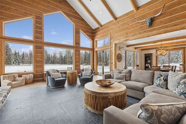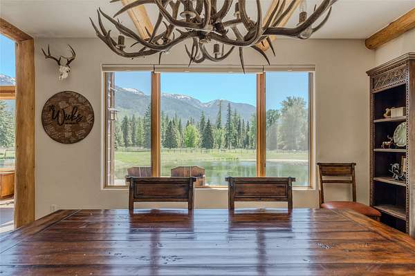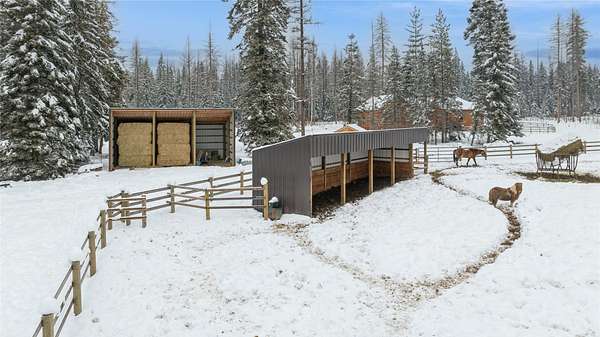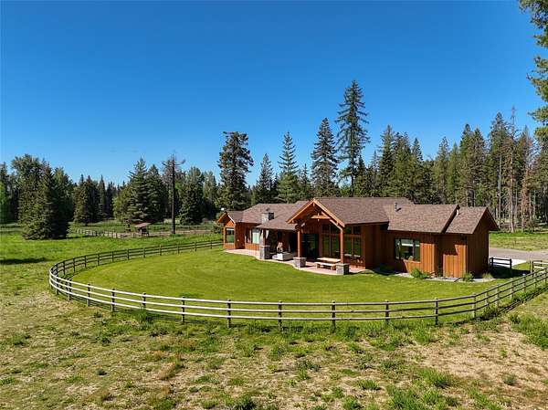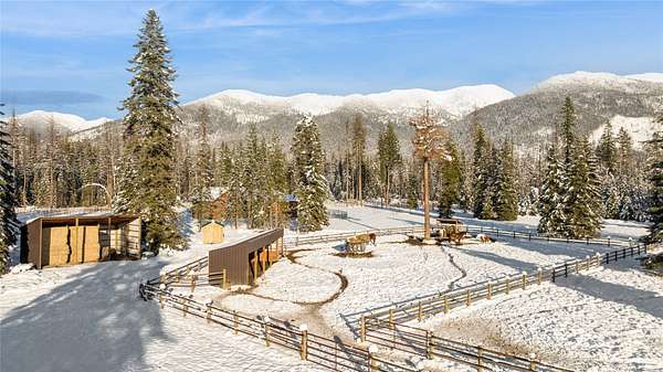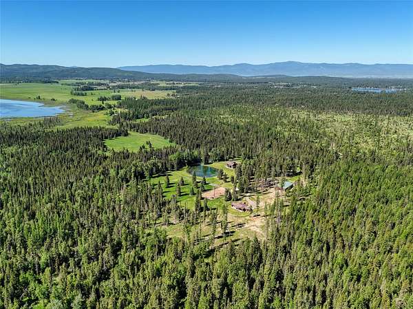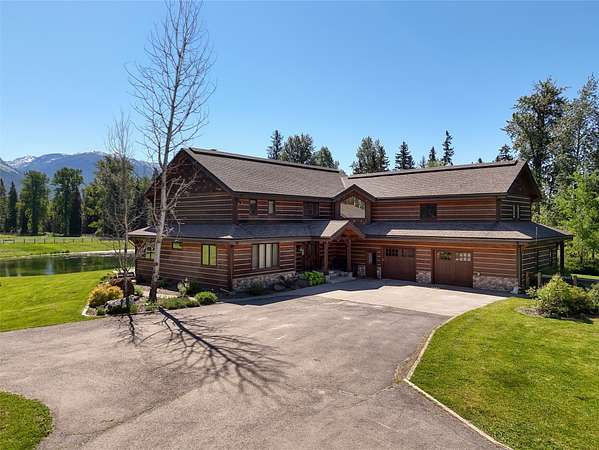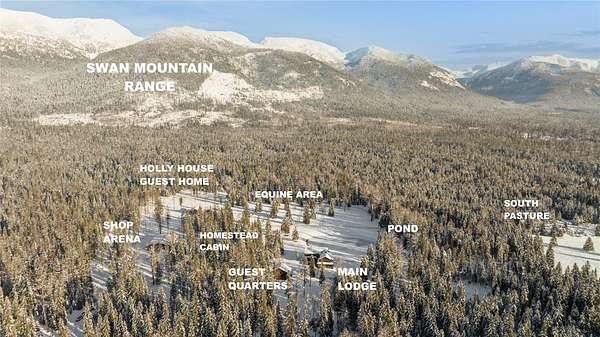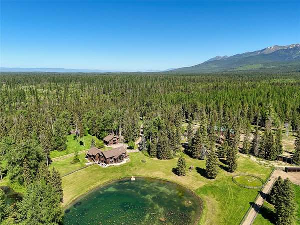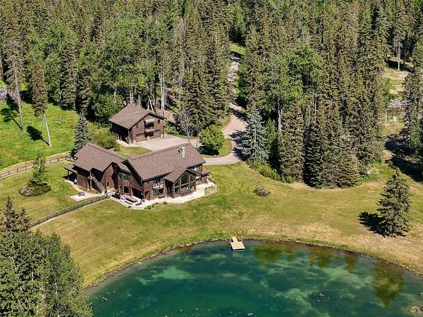 Truly a one of a kind legacy property in the tranquil village of Bigfork. Nestled on 68.89 acres, and bordered on 3 sides by thousands of acres of state land, privacy & seclusion will never be a concern. The Main Lodge is 5,389 square feet of timeless character in every log. A new chefs kitchen is fit for entertainment along with the homes 4 bedroom suites, expansive game room, theater room and bar. Your guests will have many choices in accommodations around the property: from the newly built 2,177 luxury single level home, the restored original homesteaders cabin, or the elevated guest quarters. Overlooking the stocked trout pond, you can watch the alpenglow on the Swan Mountain Range, or check on your livestock or horses while listening to the quiet. The south pasture is sub-irrigated by 2 flowing creeks that feed into the property. The heated 100x60 steel arena brings convenience to all-seasons of riding, or the storage of your big toys. See docs for more details.