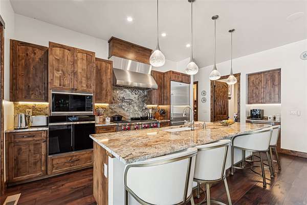 - Additional Living Quarters, Fireplace, Home Theater, Main Level Primary, Open Floorplan, Vaulted Ceilings, Walk In Closets, Wet Bar, Wired For Sound