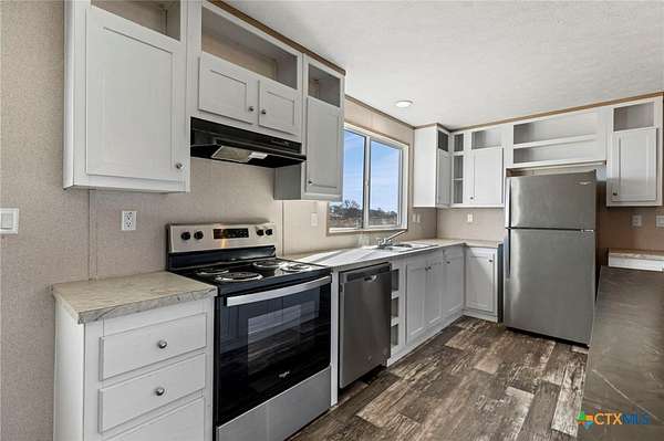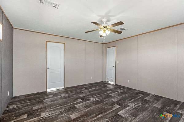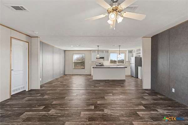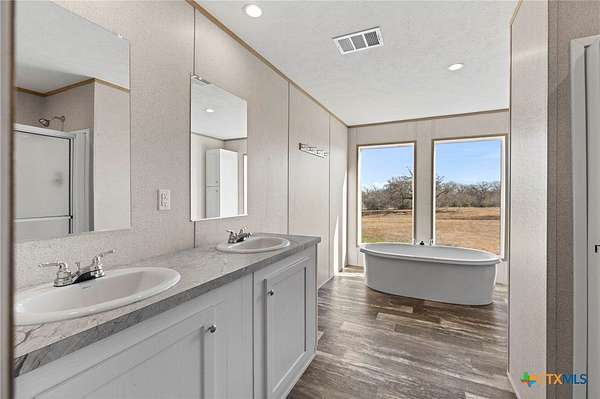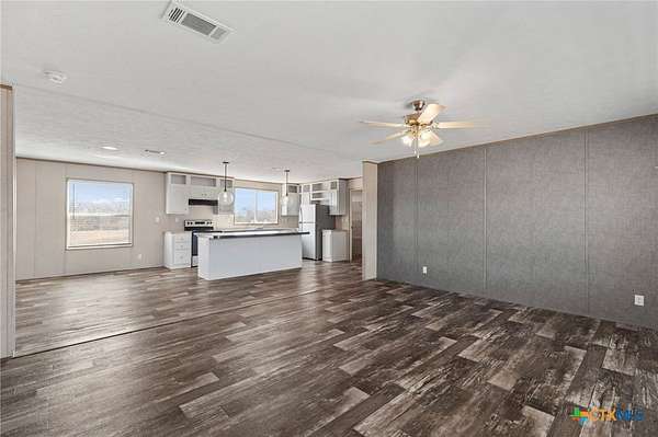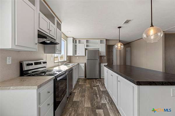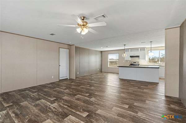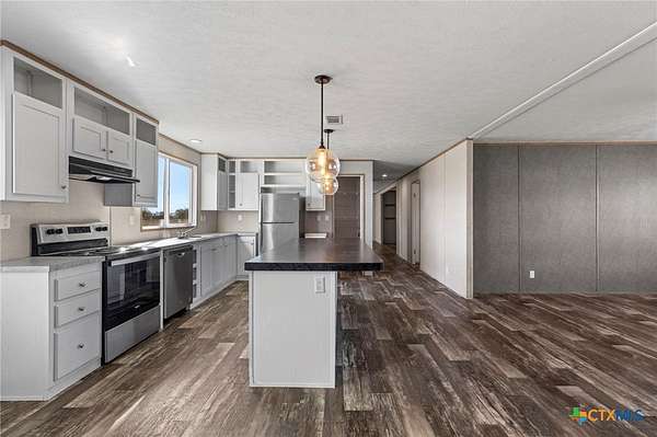 Welcome to 190 Branding Iron in Lockhart, Texas-a move-in-ready country home offering space, privacy, and modern comfort on over 6 acres with no HOA and no deed restrictions. Built in 2022, this well-maintained double-wide home sits on a concrete slab, a thoughtful upgrade by the owners that adds durability. The home features 4 spacious bedrooms plus a bonus room, perfect for a home office, media room, or guest space, along with 2 full bathrooms. Inside, you'll love the open-concept floor plan filled with abundant natural light. The home is finished with durable laminate flooring throughout-no carpet-creating a clean, modern feel. The oversized kitchen is a standout, offering white cabinetry, stainless steel appliances, ample counter space, and a large center island, ideal for entertaining or everyday living. There is also a walk in pantry. The primary suite is a true retreat with walk-in closets, a dual vanity, soaking tub, and separate walk-in shower. Outside, the property is fully fenced and enhanced by mature trees, providing shade, privacy, and a peaceful country atmosphere. An automatic gated entrance welcomes you home, while the expansive acreage offers endless possibilities-whether you envision a homestead, recreational space, or room for animals and outdoor projects. There is no floodplain and no easements, ensuring full use of the land. Located just minutes from FM 20, this property offers easy access to Lockhart, Bastrop, Kyle, and Austin, making commuting or weekend outings simple. Lockhart is renowned as the "Barbecue Capital of Texas," celebrated for its historic charm, vibrant downtown square, local shops, and iconic dining. The area blends small-town character with convenient proximity to Central Texas growth corridors, outdoor recreation, and cultural attractions. If you're looking for space, freedom, and modern living in a prime Central Texas location, this is a opportunity you won't want to miss.