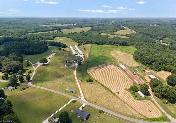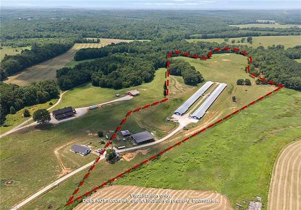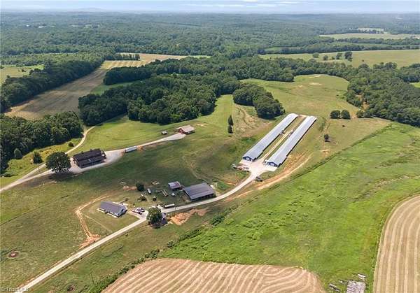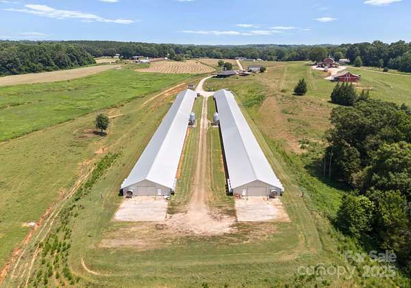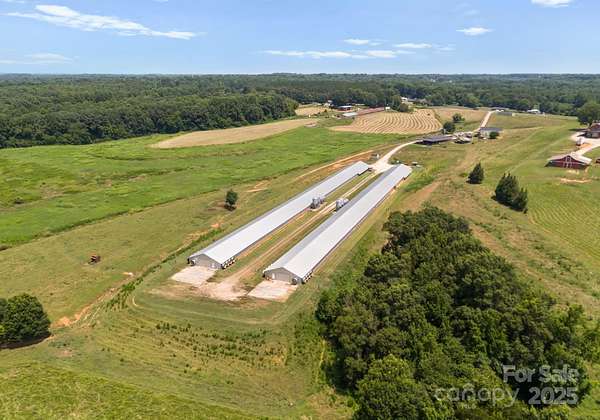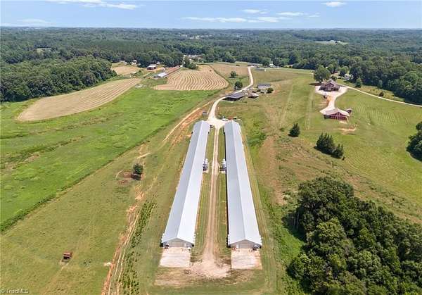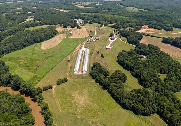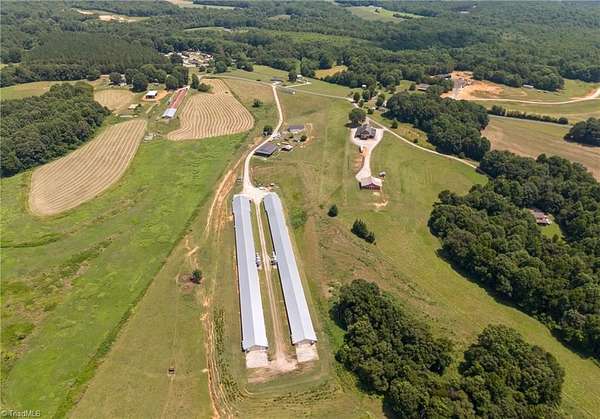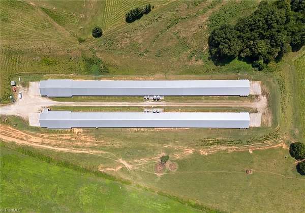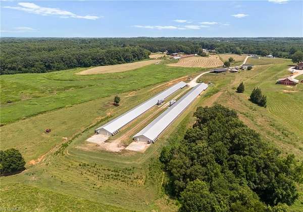 Welcome to your next opportunity in agri-investment or country living! This 48-acre farm stretches across the peaceful countryside of Iredell and Davie County, bordered by the South Yadkin River ready for poultry and cattle production. The property features two 600 ft. broiler breeder poultry houses, built in 2013, equipped with Cumberland feeding systems, automatic winches for the nest system, Hired-Hand controls, an incinerator for on-site poultry management, and a diesel generator wired to poultry barns and dwelling house. In addition to poultry, this farm is fully fenced for cattle and designed for beef production. A large hay barn provides ample space for equipment and feed. This farm includes a 3-bedroom, 2-bath home, perfect for the farm owner, and a mobile home on-site for hired help. Whether you're expanding your poultry operation, entering the livestock market, or seeking a multi-purpose income-producing farm, this one offers the complete package. Must have appointment!