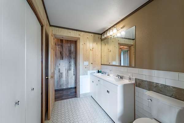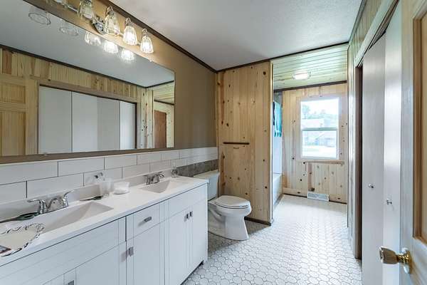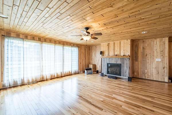 Welcome to this beautifully updated 3 bedroom, 2 bath ranch home in the heart of the Village of Birnamwood! This charming property blends modern updates with warm rustic character, featuring new PEX plumbing, a new water heater, a new metal roof, and some new windows. The attached garage is insulated and has a brand-new garage door for added efficiency and comfort. Step inside to find all-new flooring throughout, including stunning hickory hardwood floors in the living room. The tongue and groove soft maple wall coverings and tamarack ceilings create a cozy, cabin-like atmosphere. The kitchen is a standout with brand-new hickory cabinetry and updated finishes, while both bathrooms have been tastefully modernized as well. A gas fireplace in the living room adds warmth and ambiance, perfect for Wisconsin winters. Half of the home features new siding, offering a fresh appeal and lasting protection.