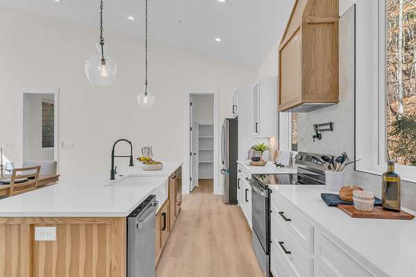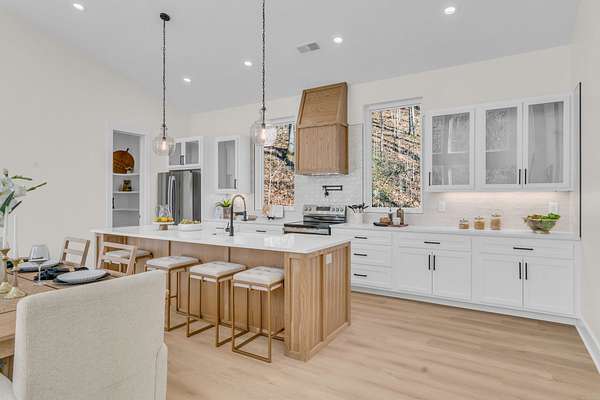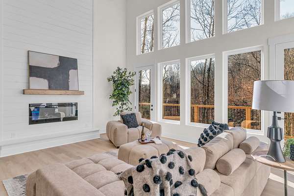 Your private Woodland Masterpiece Inspired by Mountain Luxury is approaching completion, this newly constructed custom residence redefines luxury living in a breathtaking wooded setting reminiscent of a secluded Gatlinburg retreat. Thoughtfully designed to elevate everyday life, this 4-bedroom, 3.5-bath architectural showpiece blends refined modern elegance with the warmth and tranquility of nature. The expansive two-tiered decks create a seamless indoor-outdoor experience, offering multiple vantage points to take in the ever-changing landscape. Whether enjoying morning coffee from the primary suite, unwinding in the living room by the fireplace, or retreating to the lower-level speakeasy for bourbon and cigars, every space was curated to deliver an exceptional lifestyle. Inside, you will notice elegant, light colored laminate floors throughout, then you will discover the spa-inspired bathrooms that feature oversized glass door showers, custom tilework, complimentary-backlit mirrors and sophisticated vanities, providing a serene retreat at the end of the day. The designer kitchen commands attention with an oversized statement island, striking backsplash, pot filler, and premium stainless steel appliances, all framed by clean lines and timeless finishes. Towering floor-to-ceiling windows flood the home with natural light while capturing spectacular seasonal views, snowfall in winter, vibrant autumn colors, and lush greenery throughout spring and summer, bringing the beauty of the outdoors into every room. This residence is not simply a home, but a luxury experience crafted for those who value privacy, design, and refined living. A rare opportunity to own a custom-built sanctuary where sophistication meets nature.