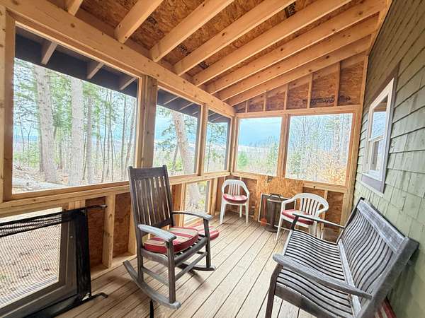 Amazing views of the mountains, lakes, and Pleasant Mountain Ski Area. Set in a peaceful location, this scenic lot offers a true four-season Maine lifestyle. Totally remodeled in 2023. The first floor includes a living room, eat-in kitchen with granite counter tops, two pantries, a half bath, and a utility room. The screened-in porch is off the kitchen perfect area to relax and enjoy the scenery. The second floor is the primary bedroom, full bath, walk-in closet, and laundry area. A slider leads to a small deck, perfect for drinking coffee and taking in the views. There is a second exit with a deck and stairs leading to the front. There are two sheds on the lot, 10x20 and 10x16 great for extra storage. The quaint town of Harrison has dining, a public sandy beach and boat launches on Crystal Lake and Long Lake. The nearby vibrant downtown Bridgton, you will have access to dining, shopping, entertainment, and skiing at Pleasant Mountain Ski Area. Easy access to snowmobiling, ATV trails, and scenic hiking paths. Enjoy year-round views of - lush summers, vibrant fall foliage, snow-covered winter landscapes from this property. Call Barbara Howe