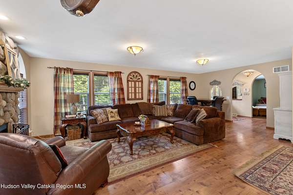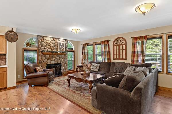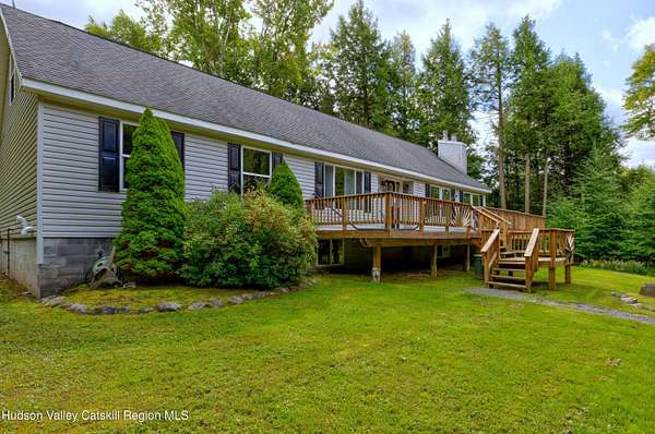 Discover the perfect blend of comfort, size, and serenity in this lovely 5 bed/3 bath, Cape Cod style home set on 5+ acres just minutes from Windham. You'll love entertaining family and friends in the large, open-concept kitchen with dining area that flows naturally into a family room complete with magnificent stone fireplace. After a fun-filled day of outside adventures, unwind in your main floor master w/ensuite that includes a relaxing soaking tub. There are two more bedrooms and full bath on the main floor with an additional two bedrooms and half-bath on the second floor. As if that's not enough room, there's a full, dry, walkout basement just waiting for you to make it your dream space. Exercise room? Media room? In-law space? The possibilities are endless. The outdoor area is equally as spacious. With over 5 acres there is plenty of room to plant the garden you've always wanted, ride your atv, host gatherings, or just relax in your tranquil surroundings. You're just minutes from Ashland Town Park, the Windham Path, breweries, wineries, farm-to-table dining, art venues, Catskill state parks, and skiing. This property offers a serene retreat with endless possibilities for entertainment all just 2.5 from NYC.
