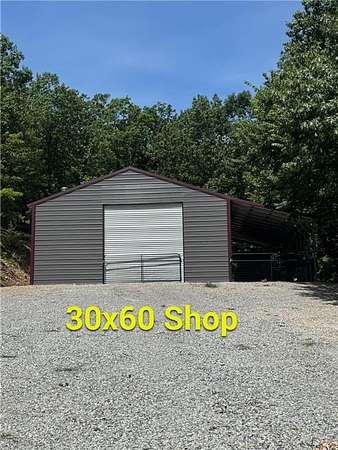 At the heart of the property stands a spacious 30x60 shop, perfect for storage, hobbies, or a workshop. Attached is a convenient lean-to, providing additional covered space for equipment or outdoor gatherings. Only 3 miles from Starkey Marina and 15 minutes to Downtown Eureka Springs.