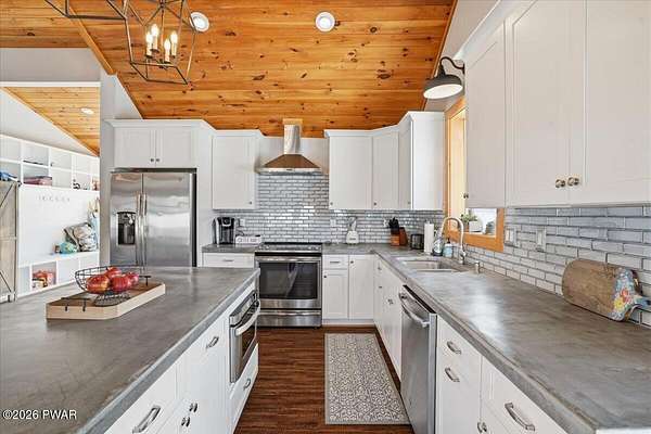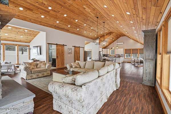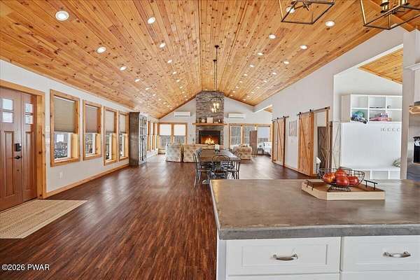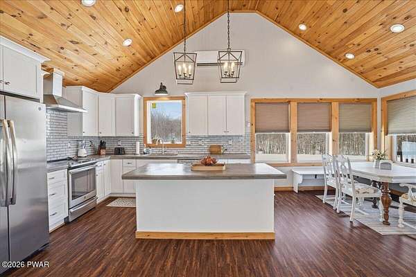 - Cathedral Ceiling(s), Chandelier, Eat-In Kitchen, High Speed Internet, Kitchen Island, Natural Woodwork, Open Floorplan