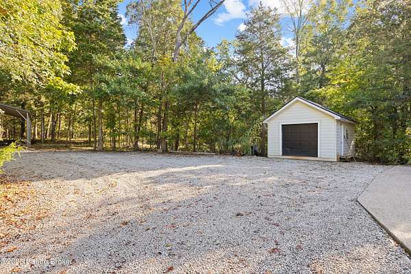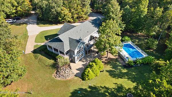 Privacy at its best! This beautiful walkout ranch is nestled on over 10 wooded acres, making it a rare find in Bullitt County. Approximately 20 years old, the home features a wrap-around porch that covers halfway around the house. It has a Hardie board and stone finish, and the expansive deck measures 12' x 38', providing stunning views of the above-ground pool and surrounding woods. Additional highlights include a quaint koi pond near the front door, a large 20' x 40' metal utility barn w/water, a 24' x 40' carport, and a 14' x 20' two-car garage or workshop. There is also a 20' x 20' workshop area in the basement. Don't miss out on this rare opportunity-call today! Don't miss out on this rare opportunitycall today!