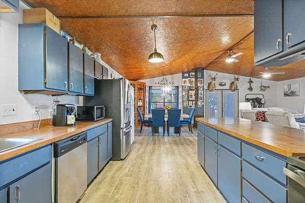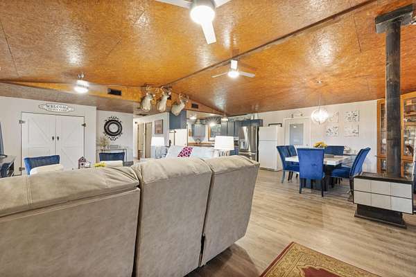 Calling all livestock owners looking for a new homestead to make their very own country oasis!! Located in the highly desired countryside of Baker, situated on a total of 14.6 acres. This two bedroom, two bathroom home offers a spacious open floor plan that is perfect for entertaining. Newer stainless appliances all throughout the kitchen, beautiful wooden counter tops for plenty of prep space, lots of cabinets for all your storage needs! Following the hallway to the back of the home you will come to the master bedroom, boasting tons of floor space and a master bathroom with plenty of natural light, along with the extra bedroom directly across the hallway. The exterior of the home offers several structures for all your livestock needs! An already established 80'x75' pole barn, 60'x80' stable barn, 16'x35' tack room, 8 horse stalls, as well as a brand new pole barn 24'x48' in the front pasture. There is cross fencing all throughout the property with gates to keep livestock separated and continually rotated in fresh green pastures. There are also (4) 50 amp electrical hook ups established in the front pasture for versatile storage of campers or for climate controlled camper storage or maybe a new business venture for rentals (buyer to verify laws and regulations pertaining camper rentals). Come bring your horses, cows and more and make this great property your own wonderful homestead with all your livestock ready to move right in with you!
