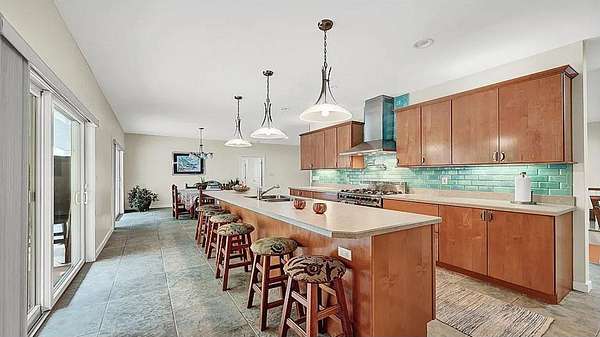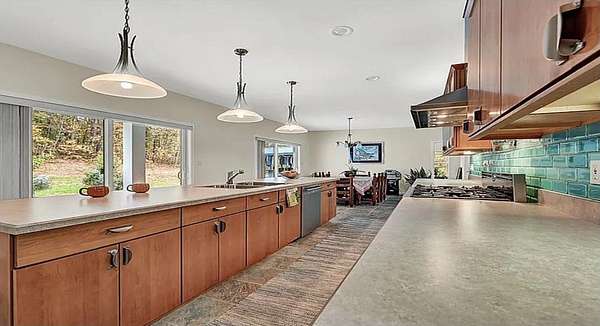 The lower level has a large family room (15'x30'), a heated garage, and a three-piece bath with shower. For the adults, they get a wet bar with pool table and game space; a private office and workspace and utility room all behind lockable doors. This space can easily be an allowable Mother/Daughter apartment. This home has hot water Radiant heat. The heat, hot water, dryer, stove and outdoor bar/bbq are all-natural gas. All utilities are under ground with a transformer on property, for clean electric without unsightly wires. Under the roof of this steel super structure, all walls are movable, its energy efficient, and low maintenance metal roof and siding will not need replacing in our lifetime.