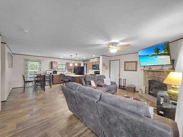 Est $1,408/moIf you are looking for riverfront living, here is your opportunity. Enjoy the peaceful surroundings of this riverfront property on the Angelina River. This mobile home includes a new polymer board deck with steps that go down to the water, double concrete carport, new slab with nearly finished storage. This home comes with an open concept layout which includes 3 bedroom and 2 baths. Enjoy the wood burning fireplace on those chilly evenings. The boat ramp is nearby for easy access to river fun and fishing. Lake Sam Rayburn is less than 5 miles away. Appliances and furniture included as well as the riding mower. Start making waterfront memories today.