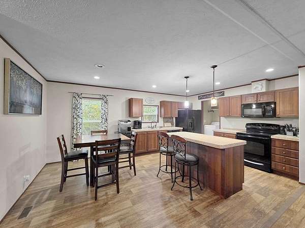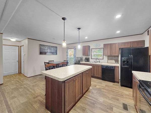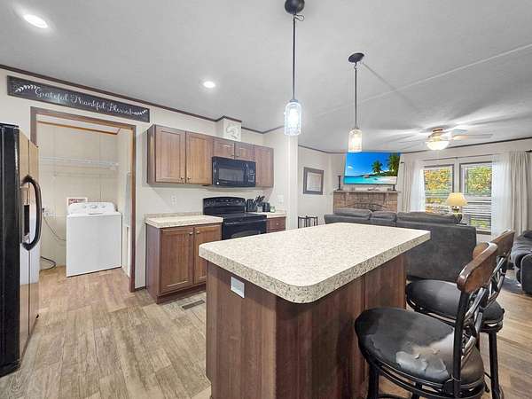 - Breakfast Bar, Cable TV, Ceiling Fan(s), Island Kitchen, Miniblinds, Woodburning Fireplace