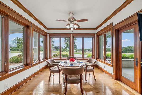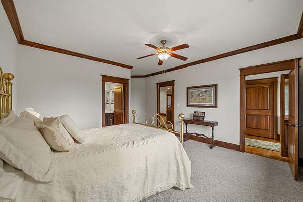 Outdoor living shines with multiple covered porches, a side patio off the breakfast room, and a 12x42 sundeck. The detached garage accommodates three vehicles with climate control and half bath. The charming guest house offers 3 bedrooms, 2.5 baths, a full kitchen, living area, and walk-out basement with garage--ideal for extended family or guests.
