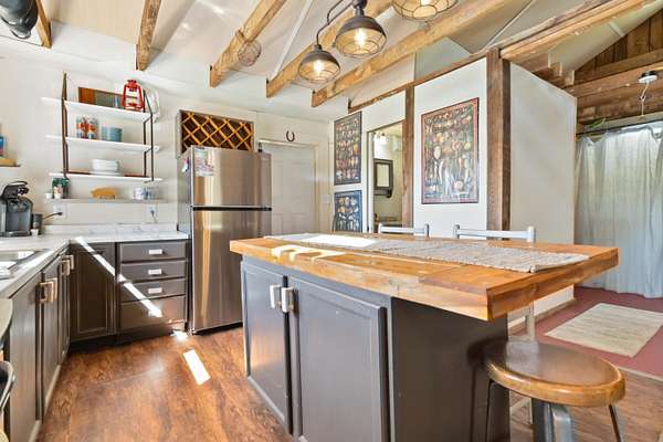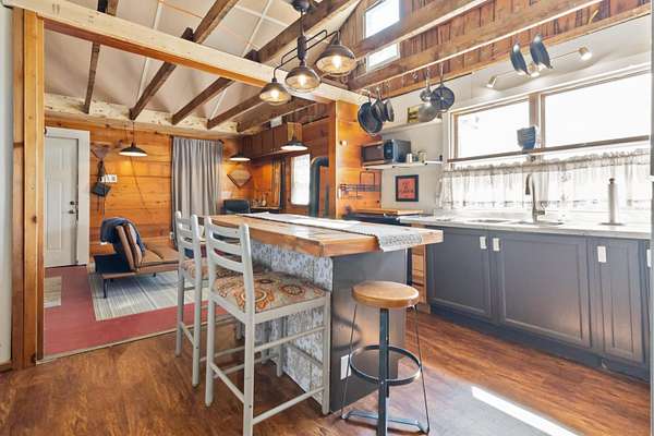 Est $662/moWhat a cute getaway this property is. Perfect for a quiet weekend, AirBnB, VRBO or full time living. This small cabin features many upgrades, 1 bedroom, living room, Kitchen, Laundry, full bath and front and back covered porches. Sitting on 2.27 +/- unrestricted acres with duel water sources. Huge potential here. Selling furnished
