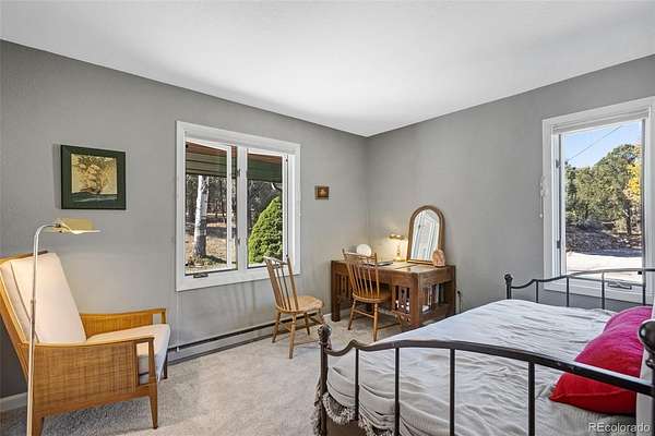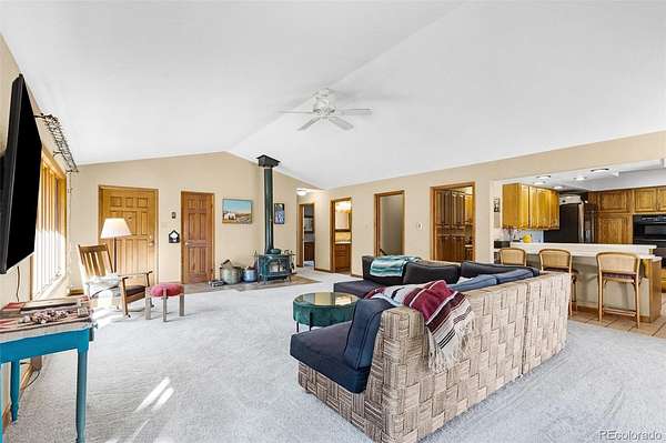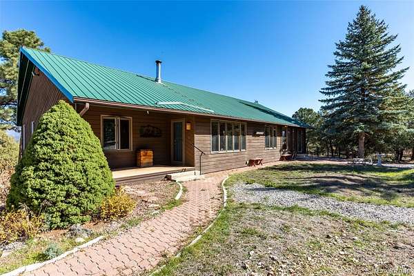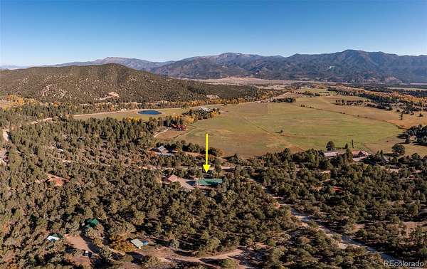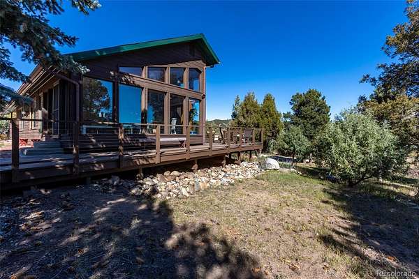 Quiet and secluded, yet with easy access to the town of Salida and the Arkansas River, this mountain home makes an ideal year-round or seasonal residence. The main level kitchen opens onto a spacious living / family room with a wood burning stove for winter ambience. Large windows let in ample natural light, as does the airy neighboring sunroom which in turn opens on to a large sunny deck and patio with mountain and valley views. The main level also features a primary suite, laundry, second bedroom and full bathroom. Downstairs the walk-out basement has a large family room with a small kitchenette, an additional large bedroom, a full bathroom, bonus room for office, crafts, or guest overflow, utility room and ample storage. This lower level has potential to turn into a lock out / in-law apartment. The property also boasts an oversized 896 sq ft two car detached garage and an additional storage shed.