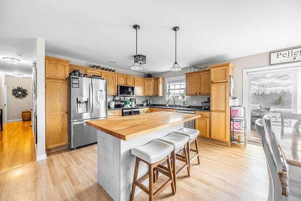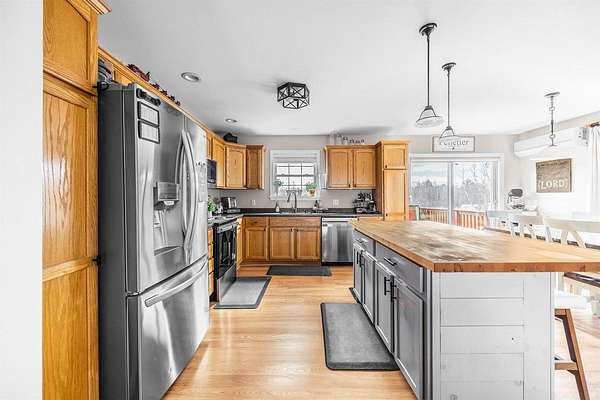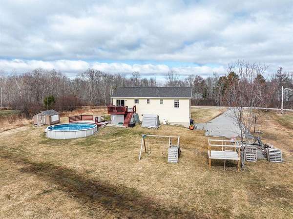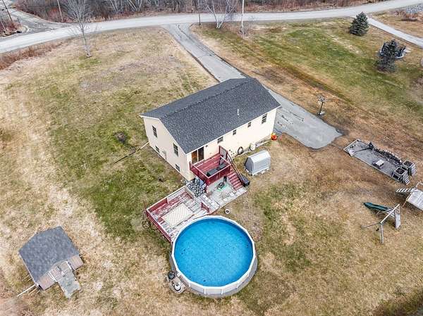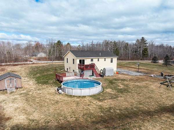 Your own private oasis in Hermon--spacious, updated, and ready to enjoy! This 3-bedroom, 2-bath Raised Ranch sits on 1.84 acres at the end of a quiet dead-end street, giving you plenty of space, privacy, and room to spread out. The main level is bright and open, featuring a kitchen with a custom island, dining area, and a roomy living room--perfect for everyday living or entertaining friends and family. The primary bedroom includes a private bath and walk-in closet, while two additional bedrooms share a full bathroom. Hardwood floors and thoughtful updates throughout add warmth and character. Downstairs, there's a finished bonus room that can serve as a home office, playroom, media space, or potential fourth bedroom. Laundry is conveniently located on this level with built-in storage, plus direct access to the attached two-car garage. Heat pumps on both levels keep the home comfortable year-round. Outside, enjoy the multi-level deck overlooking a well-maintained pool. The yard offers a fire pit, planter boxes, a pumpkin patch, two outbuildings, and plenty of open green space for relaxing or entertaining. With space, updates, and versatility, this home is ready for its next owners to move in and make it their own.