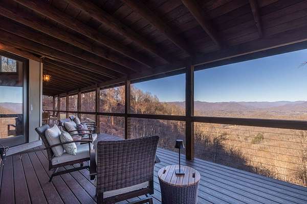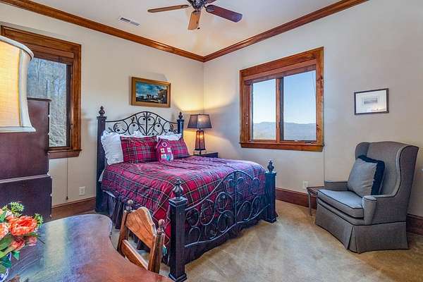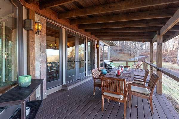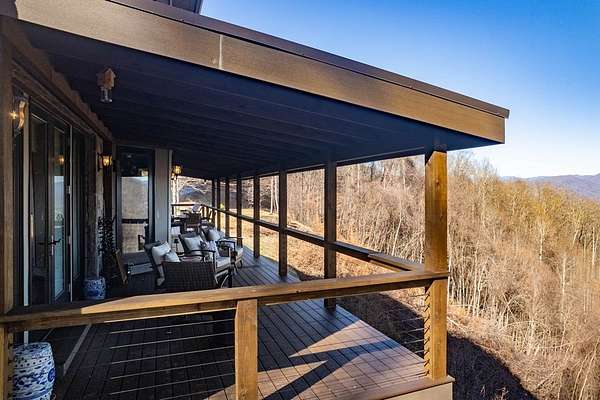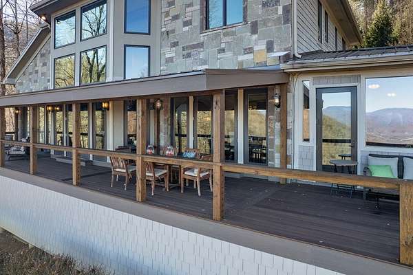 Mountain Elegance: A Private 7.43-Acre Sanctuary The Setting & Location Nestled within an exclusive gated community defined by wide, paved roads and easy access, this estate offers the ultimate in mountain privacy. Perched upon 7.43 impeccably manicured acres, the property provides a rare sense of seclusion and "elbow room" that is hard to find. Located just minutes from the Smoky Mountain Country Club, you are perfectly positioned in the regional "sweet spot" midway between Bryson City and Sylva, and just one hour west of Asheville. Refined Mountain Living The interior is a masterclass, featuring rich Brazilian cherry wood flooring, elegant tile, and premium finishes throughout. The heart of the home is the stunning kitchen and dining combo, centered around a massive granite island and custom countertops-an ideal setup for the serious home chef or the frequent entertainer. Views Without End Designed to bring the outdoors in, the home offers abundant, long-range mountain views from nearly every room. Step outside to the expansive wrap-around deck, or find shade in the attached covered - the perfect vantage point for watching the mist roll over the Smokies.