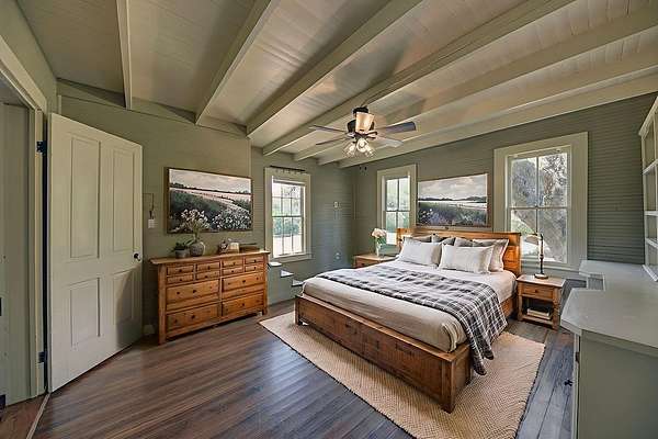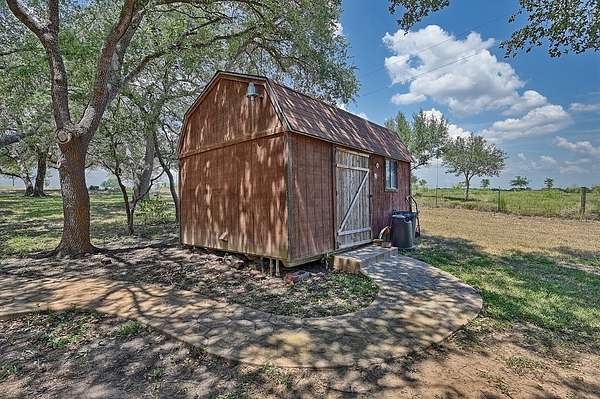 BACK ON THE MARKET!!! Imagine finding an early 1900?s built, authentic farmhouse tucked under a canopy of mature live oaks on small acreage halfway between Round Top and La Grange. HERE IT IS! This Baron Road beauty sits on 10.5 rolling acres, complete with a pond, 3 tier deck, outside shower, 2 years into securing an ag valuation with bees, and with an adjacent pole barn and storage shed. This house, situated in the Rutersville area, features 3 bedrooms, 1.5 bathrooms, full insulation, central heat and air, a metal roof, cypress exterior with replaced bats, double-pane windows, and pex exterior pipes. Except for the tiled bathrooms, there are gleaming wood floors throughout, open concept kitchen and living room with custom built cabinetry and a genuine double farmhouse sink. Square footage is 1682 and, as is characteristic of early farmhouses, there?s a large attic area accessed by an inside staircase that could easily add 4 rooms ?use your imagination! Call the listing agent for other important info or to schedule a showing appointment. EASY TO SHOW AND SELLER IS MOTIVATED!